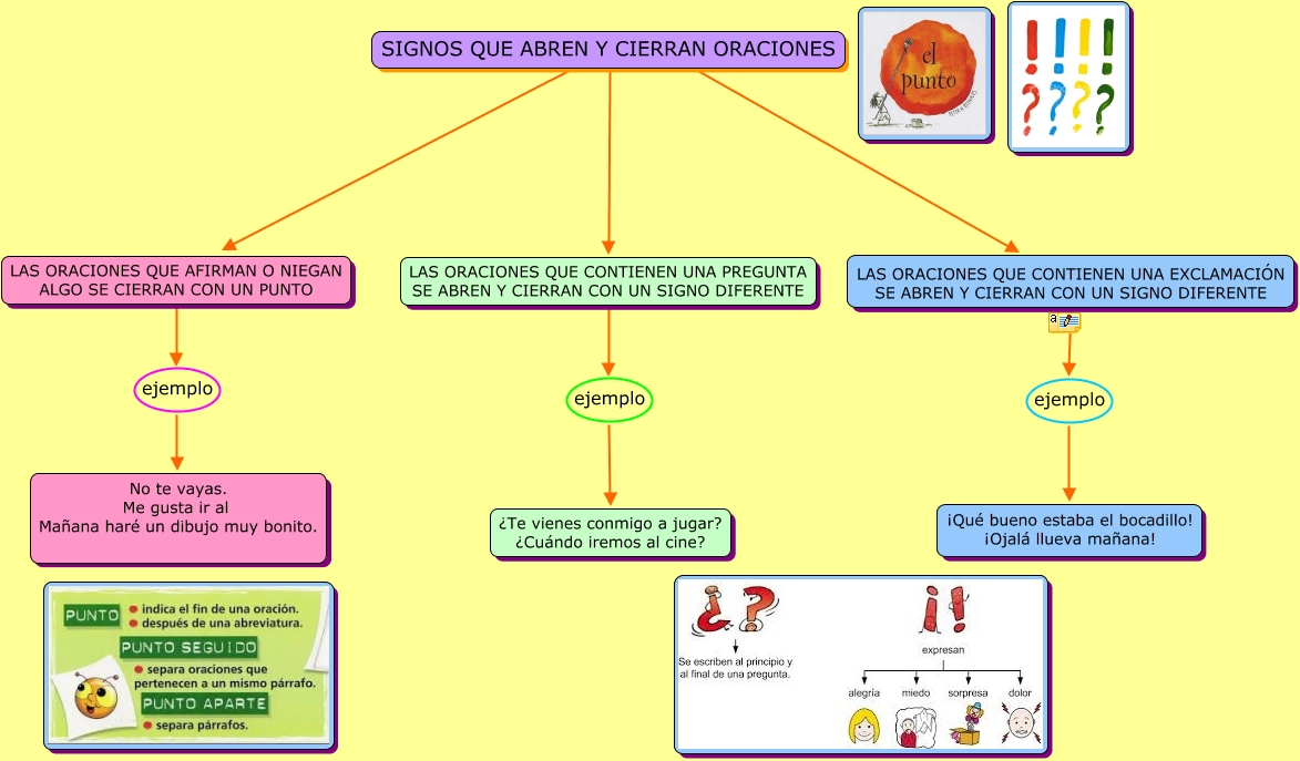 Este Cmap, tiene información relacionada con: TEMA 7 SIGNOS QUE ABREN Y CIERRAN ORACIONES, SIGNOS QUE ABREN Y CIERRAN ORACIONES ???? LAS ORACIONES QUE CONTIENEN UNA EXCLAMACIÓN SE ABREN Y CIERRAN CON UN SIGNO DIFERENTE, LAS ORACIONES QUE CONTIENEN UNA EXCLAMACIÓN SE ABREN Y CIERRAN CON UN SIGNO DIFERENTE ejemplo ¡Qué bueno estaba el bocadillo! ¡Ojalá llueva mañana!, SIGNOS QUE ABREN Y CIERRAN ORACIONES ???? LAS ORACIONES QUE CONTIENEN UNA PREGUNTA SE ABREN Y CIERRAN CON UN SIGNO DIFERENTE, SIGNOS QUE ABREN Y CIERRAN ORACIONES ???? LAS ORACIONES QUE AFIRMAN O NIEGAN ALGO SE CIERRAN CON UN PUNTO, LAS ORACIONES QUE AFIRMAN O NIEGAN ALGO SE CIERRAN CON UN PUNTO ejemplo No te vayas. Me gusta ir al Mañana haré un dibujo muy bonito., LAS ORACIONES QUE CONTIENEN UNA PREGUNTA SE ABREN Y CIERRAN CON UN SIGNO DIFERENTE ejemplo ¿Te vienes conmigo a jugar? ¿Cuándo iremos al cine?