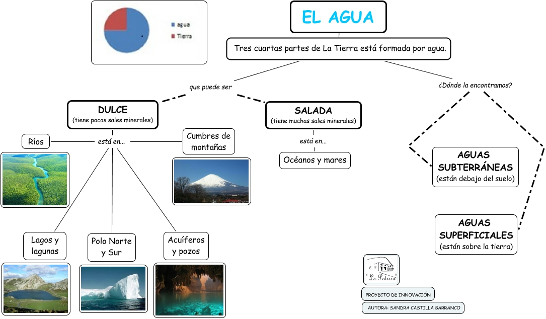 Este Cmap, tiene información relacionada con: EL AGUA, DULCE (tiene pocas sales minerales) está en... Acuíferos y pozos, DULCE (tiene pocas sales minerales) está en... Polo Norte y Sur, DULCE (tiene pocas sales minerales) está en... Lagos y lagunas, Tres cuartas partes de La Tierra está formada por agua. que puede ser SALADA (tiene muchas sales minerales), Tres cuartas partes de La Tierra está formada por agua. ¿Dónde la encontramos? AGUAS SUPERFICIALES (están sobre la tierra), Tres cuartas partes de La Tierra está formada por agua. ???? EL AGUA, Tres cuartas partes de La Tierra está formada por agua. ¿Dónde la encontramos? AGUAS SUBTERR�?NEAS (están debajo del suelo), DULCE (tiene pocas sales minerales) está en... Ríos, DULCE (tiene pocas sales minerales) está en... Cumbres de montañas, Tres cuartas partes de La Tierra está formada por agua. que puede ser DULCE (tiene pocas sales minerales), SALADA (tiene muchas sales minerales) está en... Océanos y mares