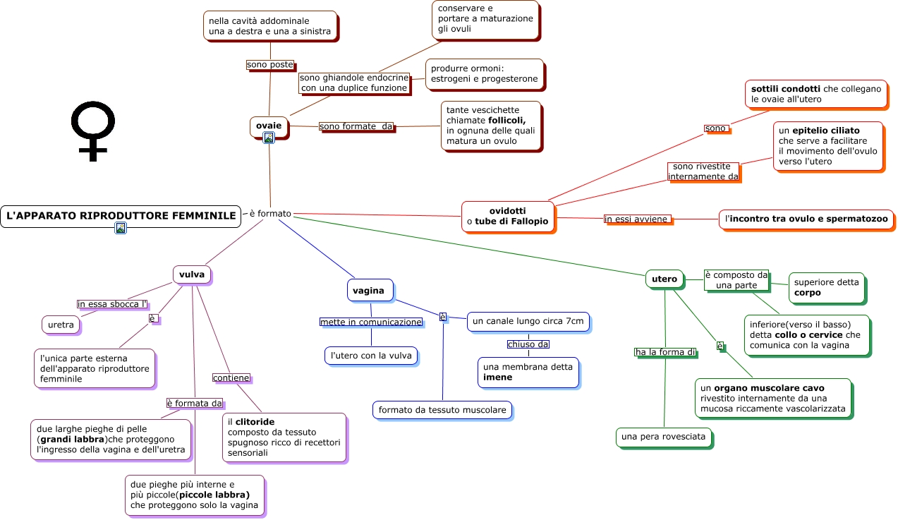 Questa Cmap, creata con IHMC CmapTools, contiene informazioni relative a: apparato riproduttore femminile, utero ha la forma di una pera rovesciata, ovidotti o tube di Fallopio sono sottili condotti che collegano le ovaie all'utero, ovaie sono ghiandole endocrine con una duplice funzione produrre ormoni: estrogeni e progesterone, ovidotti o tube di Fallopio sono rivestite internamente da un epitelio ciliato che serve a facilitare il movimento dell'ovulo verso l'utero, vulva è formato L'APPARATO RIPRODUTTORE FEMMINILE, utero è un organo muscolare cavo rivestito internamente da una mucosa riccamente vascolarizzata, ovaie sono ghiandole endocrine con una duplice funzione conservare e portare a maturazione gli ovuli, ovaie sono formate da tante vescichette chiamate follicoli, in ognuna delle quali matura un ovulo, vulva è formata da due larghe pieghe di pelle (grandi labbra)che proteggono l'ingresso della vagina e dell'uretra, un canale lungo circa 7cm chiuso da una membrana detta imene, vulva in essa sbocca l' uretra, vagina è un canale lungo circa 7cm, vagina mette in comunicazione l'utero con la vulva, utero è composto da una parte inferiore(verso il basso) detta collo o cervice che comunica con la vagina, vulva è formato ovidotti o tube di Fallopio, vulva è formato vagina, vulva è formata da due pieghe più interne e più piccole(piccole labbra) che proteggono solo la vagina, vulva è l'unica parte esterna dell'apparato riproduttore femminile, vulva contiene il clitoride composto da tessuto spugnoso ricco di recettori sensoriali, ovaie sono poste nella cavità addominale una a destra e una a sinistra