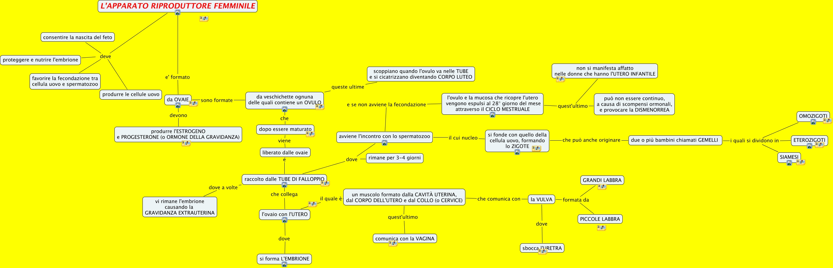 Questa Cmap, creata con IHMC CmapTools, contiene informazioni relative a: l'apparato-riproduttore-femminile, due o più bambini chiamati GEMELLI i quali si dividono in ETEROZIGOTI, l'ovulo e la mucosa che ricopre l'utero vengono espulsi al 28° giorno del mese attraverso il CICLO MESTRUALE quest'ultimo non si manifesta affatto nelle donne che hanno l'UTERO INFANTILE, l'ovulo e la mucosa che ricopre l'utero vengono espulsi al 28° giorno del mese attraverso il CICLO MESTRUALE quest'ultimo può non essere continuo, a causa di scompensi ormonali, e provocare la DISMENORREA, raccolto dalle TUBE DI FALLOPPIO dove rimane per 3-4 giorni, dopo essere maturato viene liberato dalle ovaie, da OVAIE sono formate da veschichette ognuna delle quali contiene un OVULO, raccolto dalle TUBE DI FALLOPPIO dove avviene l'incontro con lo spermatozoo, raccolto dalle TUBE DI FALLOPPIO che collega l'ovaio con l'UTERO, due o più bambini chiamati GEMELLI i quali si dividono in OMOZIGOTI, avviene l'incontro con lo spermatozoo e se non avviene la fecondazione l'ovulo e la mucosa che ricopre l'utero vengono espulsi al 28° giorno del mese attraverso il CICLO MESTRUALE, liberato dalle ovaie e raccolto dalle TUBE DI FALLOPPIO, due o più bambini chiamati GEMELLI i quali si dividono in SIAMESI, la VULVA formata da GRANDI LABBRA, L'APPARATO RIPRODUTTORE FEMMINILE deve favorire la fecondazione tra cellula uovo e spermatozoo, avviene l'incontro con lo spermatozoo il cui nucleo si fonde con quello della cellula uovo, formando lo ZIGOTE, da OVAIE devono produrre l'ESTROGENO e PROGESTERONE (o ORMONE DELLA GRAVIDANZA), da veschichette ognuna delle quali contiene un OVULO che dopo essere maturato, si fonde con quello della cellula uovo, formando lo ZIGOTE che può anche originare due o più bambini chiamati GEMELLI, la VULVA formata da PICCOLE LABBRA, da veschichette ognuna delle quali contiene un OVULO queste ultime scoppiano quando l'ovulo va nelle TUBE e si cicatrizzano diventando CORPO LUTEO