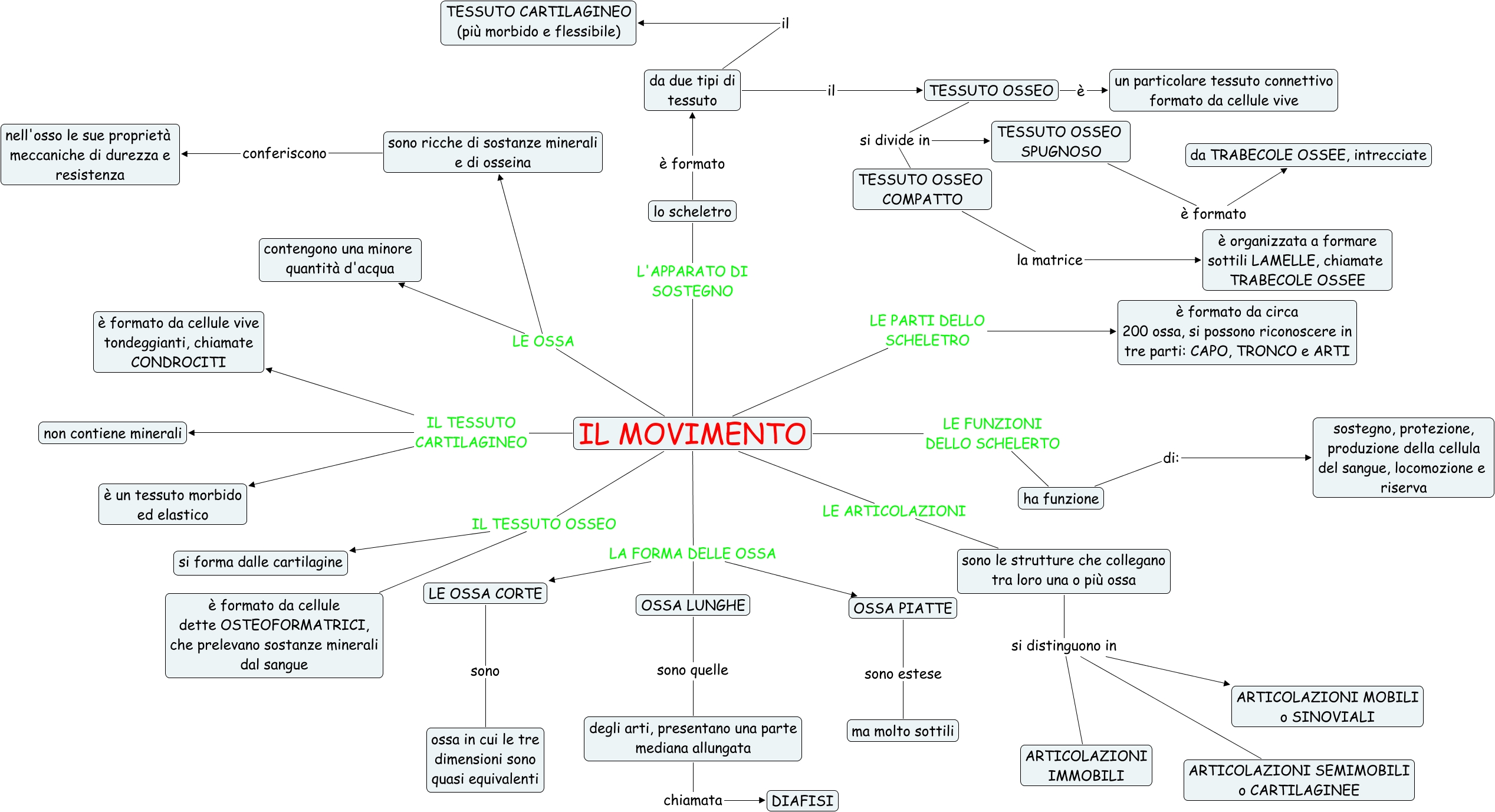 Questa Cmap, creata con IHMC CmapTools, contiene informazioni relative a: il movimento, IL MOVIMENTO LE ARTICOLAZIONI sono le strutture che collegano tra loro una o più ossa, OSSA LUNGHE sono quelle degli arti, presentano una parte mediana allungata, TESSUTO OSSEO COMPATTO la matrice è organizzata a formare sottili LAMELLE, chiamate TRABECOLE OSSEE, sono le strutture che collegano tra loro una o più ossa si distinguono in ARTICOLAZIONI IMMOBILI, IL MOVIMENTO LE OSSA sono ricche di sostanze minerali e di osseina, TESSUTO OSSEO si divide in TESSUTO OSSEO COMPATTO, ha funzione di: sostegno, protezione, produzione della cellula del sangue, locomozione e riserva, IL MOVIMENTO LA FORMA DELLE OSSA LE OSSA CORTE, sono le strutture che collegano tra loro una o più ossa si distinguono in ARTICOLAZIONI MOBILI o SINOVIALI, IL MOVIMENTO IL TESSUTO OSSEO è formato da cellule dette OSTEOFORMATRICI, che prelevano sostanze minerali dal sangue, OSSA PIATTE sono estese ma molto sottili, IL MOVIMENTO LE PARTI DELLO SCHELETRO è formato da circa 200 ossa, si possono riconoscere in tre parti: CAPO, TRONCO e ARTI, da due tipi di tessuto il TESSUTO OSSEO, sono le strutture che collegano tra loro una o più ossa si distinguono in ARTICOLAZIONI SEMIMOBILI o CARTILAGINEE, IL MOVIMENTO IL TESSUTO CARTILAGINEO è formato da cellule vive tondeggianti, chiamate CONDROCITI, IL MOVIMENTO IL TESSUTO CARTILAGINEO non contiene minerali, IL MOVIMENTO LE FUNZIONI DELLO SCHELERTO ha funzione, IL MOVIMENTO LA FORMA DELLE OSSA OSSA PIATTE, degli arti, presentano una parte mediana allungata chiamata DIAFISI, lo scheletro è formato da due tipi di tessuto