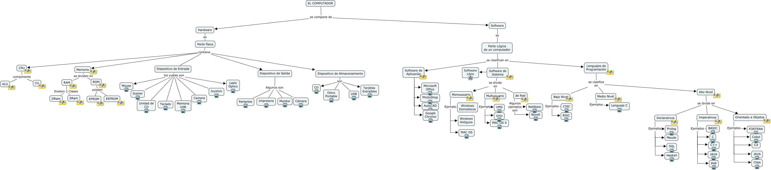Este Cmap, tiene información relacionada con: El Computador y Software Libre(Carlos David Ruiz Garcia), Lenguajes de Programación se clasifica en Alto Nivel, Bajo Nivel Ejemplos CISC, Parte física contiene Memoria, ROM existen EPROM, Declarativos Ejemplos Maude, Dispositivo de Almacenamiento son Disco Portable, Memoria se dividen en RAM, Software de Aplicación ???? AutoCAD, Parte Lógica de un computador se clasifican en Software de Sistema, Dispositivo de Almacenamiento son CD, Software de Aplicación ???? PhotoShop, de Red Algunos ejemplos son Novell, Parte física contiene Dispositivo de Salida, Software es Parte Lógica de un computador, Dispositivo de Salida Algunos son Parlantes, Parte Lógica de un computador se clasifican en Software de Aplicación, Imperativos Ejemplos PHP, Dispositivo de Entrada los cuales son Camara, Multiusuario Ejemplo VMS, Dispositivo de Entrada los cuales son Unidad de CD