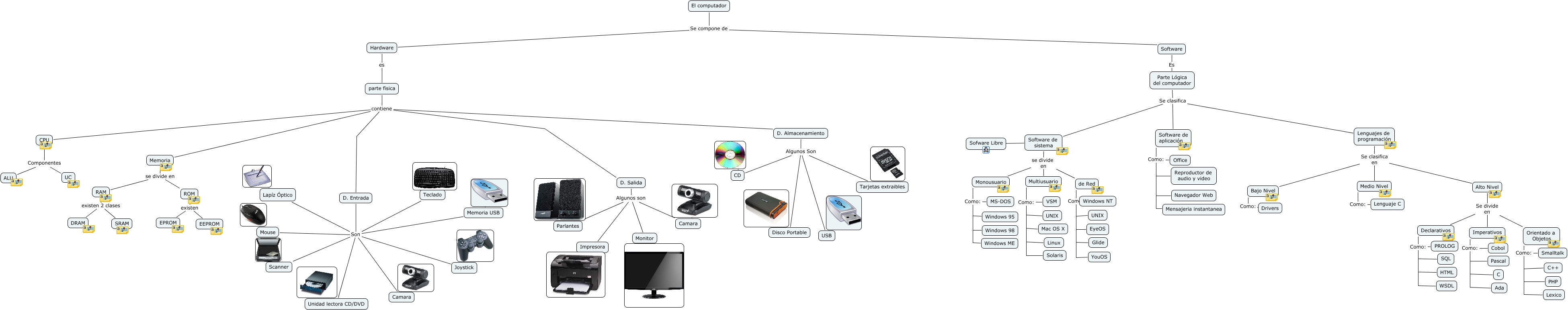 Este Cmap, tiene información relacionada con: PC-Andres David Torres T.cmap, Software de aplicación Como: Reproductor de audio y video, Monousuario Como: MS-DOS, Monousuario Como: Windows ME, CPU Componentes ALU, de Red Como: Windows NT, D. Salida Algunos son Impresora, Medio Nivel Como: Lenguaje C, Lenguajes de programación Se clasifica en Bajo Nivel, Software Es Parte Lógica del computador, Scanner ????, Software de aplicación Como: Mensajeria instantanea, Monousuario Como: Windows 98, Lapíz Óptico ????, D. Salida Algunos son Parlantes, Orientado a Objetos Como: C++, Impresora ????, Parte Lógica del computador Se clasifica Software de sistema, Lenguajes de programación Se clasifica en Alto Nivel, Tarjetas extraibles ????, D. Salida Algunos son Monitor