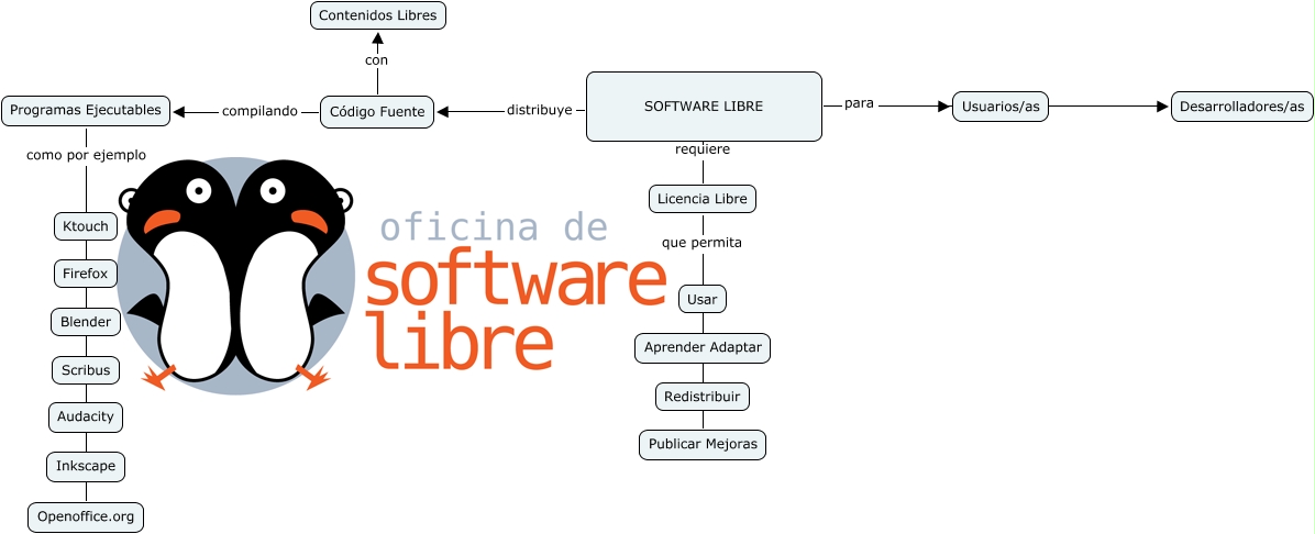 Este Cmap, tiene información relacionada con: Software Libre, SOFTWARE LIBRE para Desarrolladores/as, Código Fuente con Contenidos Libres, SOFTWARE LIBRE requiere Licencia Libre, Programas Ejecutables como por ejemplo Audacity, SOFTWARE LIBRE distribuye Código Fuente, Programas Ejecutables como por ejemplo Inkscape, SOFTWARE LIBRE para Usuarios/as, Licencia Libre que permita Aprender Adaptar, Programas Ejecutables como por ejemplo Ktouch, Programas Ejecutables como por ejemplo Scribus, Licencia Libre que permita Redistribuir, Código Fuente compilando Programas Ejecutables, Licencia Libre que permita Usar, Programas Ejecutables como por ejemplo Firefox, Programas Ejecutables como por ejemplo Blender, Programas Ejecutables como por ejemplo Openoffice.org, Licencia Libre que permita Publicar Mejoras