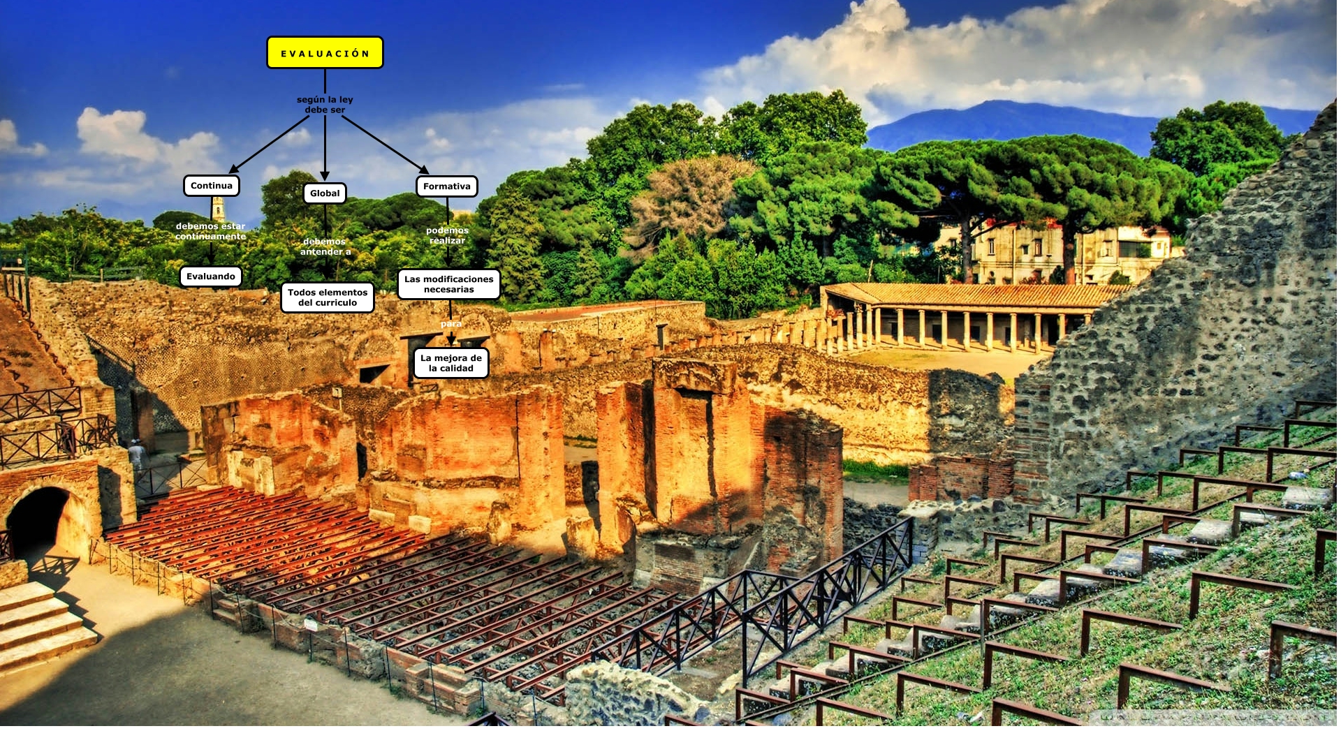 Este Cmap, tiene información relacionada con: Evaluación, E V A L U A C I Ó N según la ley debe ser Continua, E V A L U A C I Ó N según la ley debe ser Formativa, E V A L U A C I Ó N según la ley debe ser Global, Global debemos antender a Todos elementos del curriculo, Formativa podemos realizar Las modificaciones necesarias, Continua debemos estar continuamente Evaluando, Las modificaciones necesarias para La mejora de la calidad
