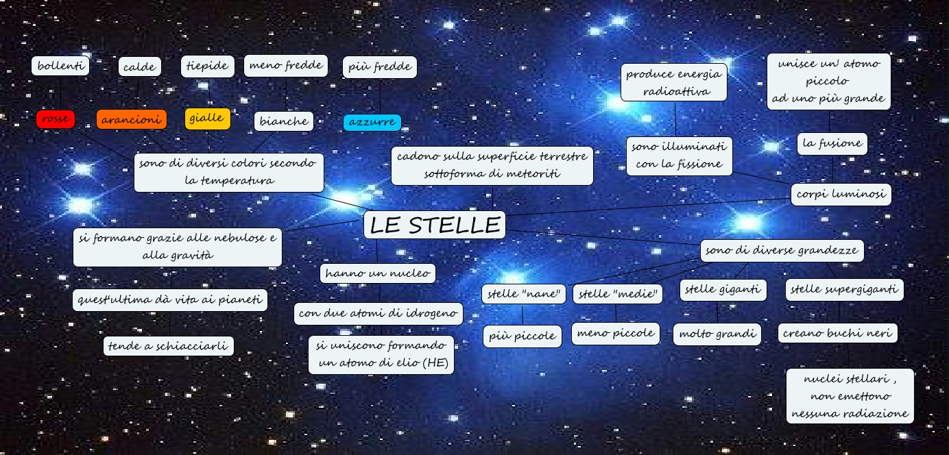 Questa Cmap, creata con IHMC CmapTools, contiene informazioni relative a: stelle, stelle "nane" ???? sono di diverse grandezze, stelle supergiganti ???? sono di diverse grandezze, bianche ???? meno fredde, arancioni ???? calde, rosse ???? sono di diversi colori secondo la temperatura, gialle ???? sono di diversi colori secondo la temperatura, quest'ultima dà vita ai pianeti ???? tende a schiacciarli, creano buchi neri ???? nuclei stellari , non emettono nessuna radiazione, la fusione ???? unisce un' atomo piccolo ad uno più grande, LE STELLE ???? corpi luminosi, gialle ???? tiepide, arancioni ???? sono di diversi colori secondo la temperatura, LE STELLE ???? sono di diverse grandezze, stelle "medie" ???? meno piccole, LE STELLE ???? sono di diversi colori secondo la temperatura, gialle ???? sono di diversi colori secondo la temperatura, corpi luminosi ???? la fusione, hanno un nucleo ???? con due atomi di idrogeno, LE STELLE ???? si formano grazie alle nebulose e alla gravità, stelle giganti ???? sono di diverse grandezze