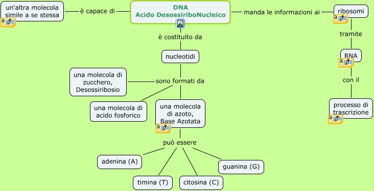 Questa Cmap, creata con IHMC CmapTools, contiene informazioni relative a: DNA, una molecola di azoto, Base Azotata può essere adenina (A), una molecola di azoto, Base Azotata può essere citosina (C), nucleotidi sono formati da una molecola di azoto, Base Azotata, ribosomi tramite RNA, DNA Acido DesossiriboNucleico manda le informazioni ai ribosomi, DNA Acido DesossiriboNucleico è costituito da nucleotidi, DNA Acido DesossiriboNucleico è capace di un'altra molecola simile a se stessa, una molecola di azoto, Base Azotata può essere guanina (G), una molecola di azoto, Base Azotata può essere timina (T), RNA con il processo di trascrizione, nucleotidi sono formati da una molecola di acido fosforico, nucleotidi sono formati da una molecola di zucchero, Desossiribosio