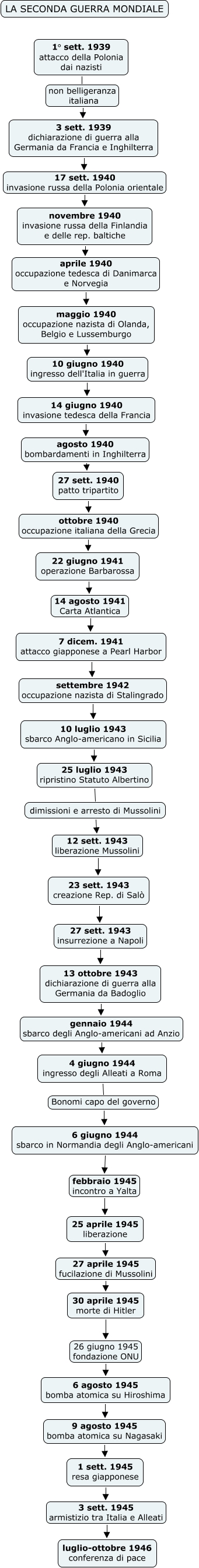 Questa Cmap, creata con IHMC CmapTools, contiene informazioni relative a: seconda guerra mondiale, 7 dicem. 1941 attacco giapponese a Pearl Harbor settembre 1942 occupazione nazista di Stalingrado 10 luglio 1943 sbarco Anglo-americano in Sicilia, 3 sett. 1939 dichiarazione di guerra alla Germania da Francia e Inghilterra 17 sett. 1940 invasione russa della Polonia orientale novembre 1940 invasione russa della Finlandia e delle rep. baltiche, 14 giugno 1940 invasione tedesca della Francia agosto 1940 bombardamenti in Inghilterra 27 sett. 1940 patto tripartito, dimissioni e arresto di Mussolini 12 sett. 1943 liberazione Mussolini 23 sett. 1943 creazione Rep. di Salò, novembre 1940 invasione russa della Finlandia e delle rep. baltiche aprile 1940 occupazione tedesca di Danimarca e Norvegia maggio 1940 occupazione nazista di Olanda, Belgio e Lussemburgo, 23 sett. 1943 creazione Rep. di Salò 27 sett. 1943 insurrezione a Napoli 13 ottobre 1943 dichiarazione di guerra alla Germania da Badoglio, 6 agosto 1945 bomba atomica su Hiroshima 9 agosto 1945 bomba atomica su Nagasaki 1 sett. 1945 resa giapponese, 10 luglio 1943 sbarco Anglo-americano in Sicilia 25 luglio 1943 ripristino Statuto Albertino dimissioni e arresto di Mussolini, 27 sett. 1940 patto tripartito ottobre 1940 occupazione italiana della Grecia 22 giugno 1941 operazione Barbarossa, 6 giugno 1944 sbarco in Normandia degli Anglo-americani febbraio 1945 incontro a Yalta 25 aprile 1945 liberazione, 13 ottobre 1943 dichiarazione di guerra alla Germania da Badoglio gennaio 1944 sbarco degli Anglo-americani ad Anzio 4 giugno 1944 ingresso degli Alleati a Roma, 30 aprile 1945 morte di Hitler 26 giugno 1945 fondazione ONU 6 agosto 1945 bomba atomica su Hiroshima, 4 giugno 1944 ingresso degli Alleati a Roma Bonomi capo del governo 6 giugno 1944 sbarco in Normandia degli Anglo-americani, 25 aprile 1945 liberazione 27 aprile 1945 fucilazione di Mussolini 30 aprile 1945 morte di Hitler, maggio 1940 occupazione nazista di Olanda, Belgio e Lussemburgo 10 giugno 1940 ingresso dell'Italia in guerra 14 giugno 1940 invasione tedesca della Francia, 1 sett. 1945 resa giapponese 3 sett. 1945 armistizio tra Italia e Alleati luglio-ottobre 1946 conferenza di pace, 1° sett. 1939 attacco della Polonia dai nazisti non belligeranza italiana 3 sett. 1939 dichiarazione di guerra alla Germania da Francia e Inghilterra, 22 giugno 1941 operazione Barbarossa 14 agosto 1941 Carta Atlantica 7 dicem. 1941 attacco giapponese a Pearl Harbor
