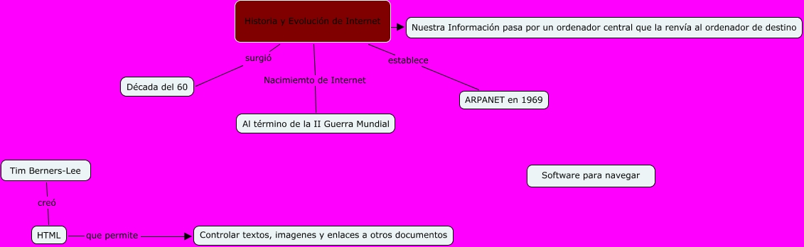 Este Cmap, tiene información relacionada con: Historia de Internet Poletti, Historia y Evolución de Internet establece ARPANET en 1969, HTML que permite Controlar textos, imagenes y enlaces a otros documentos, Tim Berners-Lee creó HTML, Historia y Evolución de Internet ???? Nuestra Información pasa por un ordenador central que la renvía al ordenador de destino, Historia y Evolución de Internet Nacimiemto de Internet Al término de la II Guerra Mundial, Historia y Evolución de Internet surgió Década del 60