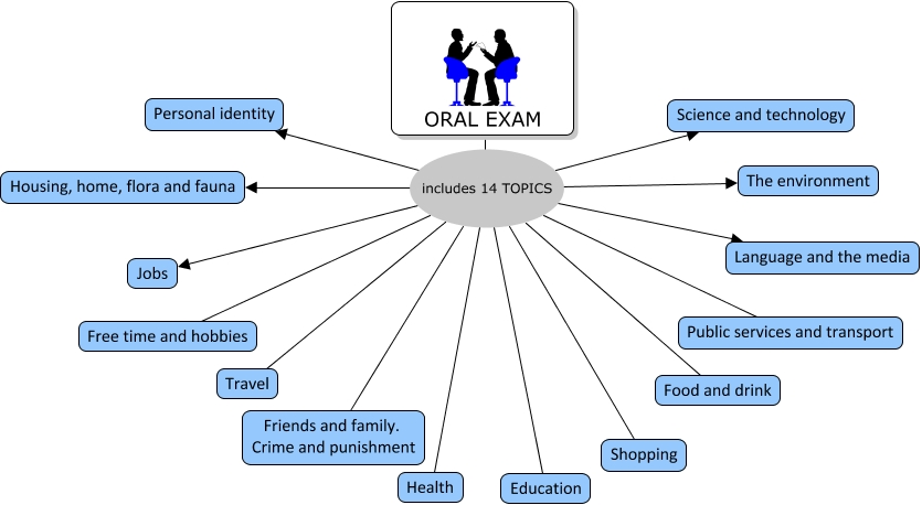 Este Cmap, tiene información relacionada con: Oral exam topics, ORAL EXAM includes 14 TOPICS Language and the media, ORAL EXAM includes 14 TOPICS Travel, ORAL EXAM includes 14 TOPICS Free time and hobbies, ORAL EXAM includes 14 TOPICS Shopping, ORAL EXAM includes 14 TOPICS Housing, home, flora and fauna, ORAL EXAM includes 14 TOPICS Health, ORAL EXAM includes 14 TOPICS Science and technology, ORAL EXAM includes 14 TOPICS Food and drink, ORAL EXAM includes 14 TOPICS The environment, ORAL EXAM includes 14 TOPICS Education, ORAL EXAM includes 14 TOPICS Friends and family. Crime and punishment, ORAL EXAM includes 14 TOPICS Personal identity, ORAL EXAM includes 14 TOPICS Public services and transport, ORAL EXAM includes 14 TOPICS Jobs