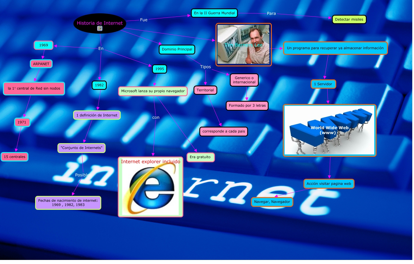 Este Cmap, tiene información relacionada con: historia internet luciana, Generico o internacional ???? Formado por 3 letras, En la II Guerra Mundial Para Detectar misiles, "Conjunto de Internets" Posibles Fechas de nacimiento de internet: 1969 , 1982, 1983, Dominio Principal Tipos Generico o internacional, ARPANET ???? la 1° central de Red sin nodos, Dominio Principal Tipos Territorial, World Wide Web (www) ???? Acción visitar pagina web, Historia de Internet Fue En la II Guerra Mundial, Un programa para recuperar ya almacenar información ???? 1 Servidor, Acción visitar pagina web ???? Navegar, Navegador, Microsoft lanza su propio navegador con Internet explorer incluido, Tim Berners Lee creó Un programa para recuperar ya almacenar información, Microsoft lanza su propio navegador ???? Era gratuito, 1982 ???? 1 definición de Internet, la 1° central de Red sin nodos ???? 1971, 1971 ???? 15 centrales, Historia de Internet En 1969, Historia de Internet En 1982, Territorial ???? corresponde a cada pais, Historia de Internet ???? Dominio Principal