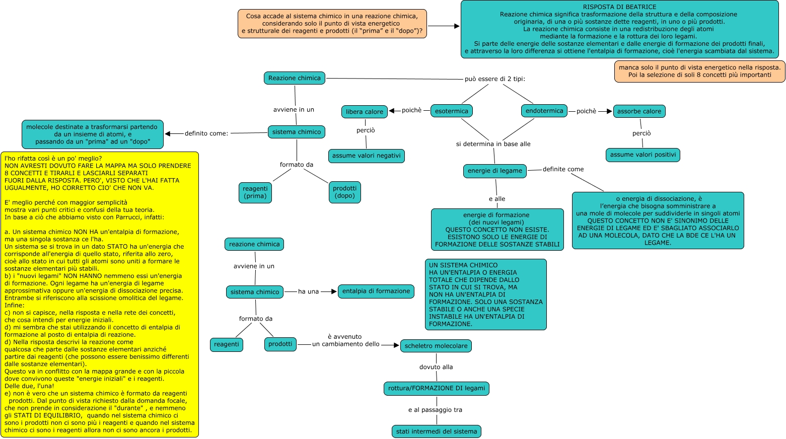 Questa Cmap, creata con IHMC CmapTools, contiene informazioni relative a: bea reazioni chimiche, esotermica poichè libera calore, assorbe calore perciò assume valori positivi, sistema chimico formato da prodotti (dopo), reazione chimica avviene in un sistema chimico, endotermica poichè assorbe calore, sistema chimico formato da prodotti, energie di legame definite come o energia di dissociazione, è l’energia che bisogna somministrare a una mole di molecole per suddividerle in singoli atomi QUESTO CONCETTO NON E' SINONIMO DELLE ENERGIE DI LEGAME ED E' SBAGLIATO ASSOCIARLO AD UNA MOLECOLA, DATO CHE LA BDE CE L'HA UN LEGAME., scheletro molecolare dovuto alla rottura/FORMAZIONE DI legami, Reazione chimica può essere di 2 tipi: endotermica, Reazione chimica può essere di 2 tipi: esotermica, prodotti è avvenuto un cambiamento dello scheletro molecolare, sistema chimico formato da reagenti (prima), sistema chimico ha una entalpia di formazione, sistema chimico formato da reagenti, esotermica si determina in base alle energie di legame, rottura/FORMAZIONE DI legami e al passaggio tra stati intermedi del sistema, sistema chimico definito come: molecole destinate a trasformarsi partendo da un insieme di atomi, e passando da un "prima" ad un "dopo", energie di legame e alle energie di formazione (dei nuovi legami) QUESTO CONCETTO NON ESISTE. ESISTONO SOLO LE ENERGIE DI FORMAZIONE DELLE SOSTANZE STABILI, libera calore perciò assume valori negativi, endotermica si determina in base alle energie di legame