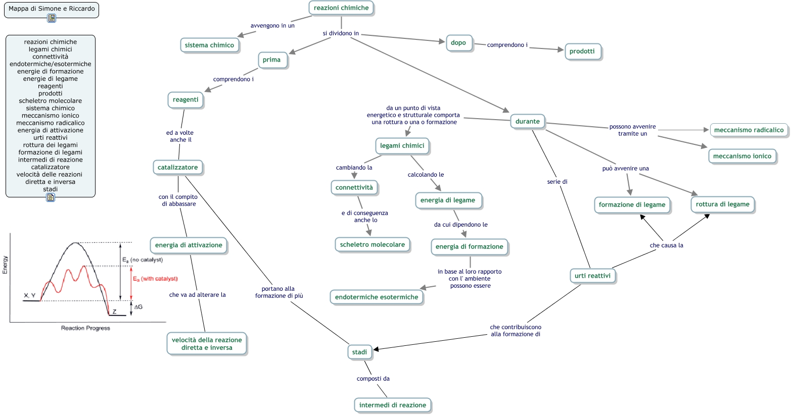 Questa Cmap, creata con IHMC CmapTools, contiene informazioni relative a: Reazioni_B, urti reattivi che contribuiscono alla formazione di stadi, energia di legame da cui dipendono le energia di formazione, catalizzatore portano alla formazione di più stadi, energia di attivazione che va ad alterare la velocità della reazione diretta e inversa, durante da un punto di vista energetico e strutturale comporta una rottura o una o formazione legami chimici, dopo comprendono i prodotti, reazioni chimiche avvengono in un sistema chimico, catalizzatore con il compito di abbassare energia di attivazione, durante possono avvenire tramite un meccanismo radicalico, legami chimici cambiando la connettività, connettività e di conseguenza anche lo scheletro molecolare, reazioni chimiche si dividono in durante, reagenti ed a volte anche il catalizzatore, reazioni chimiche si dividono in dopo, stadi composti da intermedi di reazione, urti reattivi che causa la rottura di legame, reazioni chimiche si dividono in prima, durante possono avvenire tramite un meccanismo ionico, durante serie di urti reattivi, durante può avvenire una rottura di legame