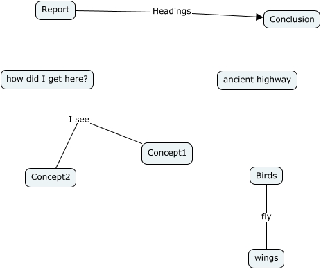 This Concept Map, created with IHMC CmapTools, has information related to: Cmap01, Concept1 I see Concept2, Report Headings Conclusion, Birds fly wings