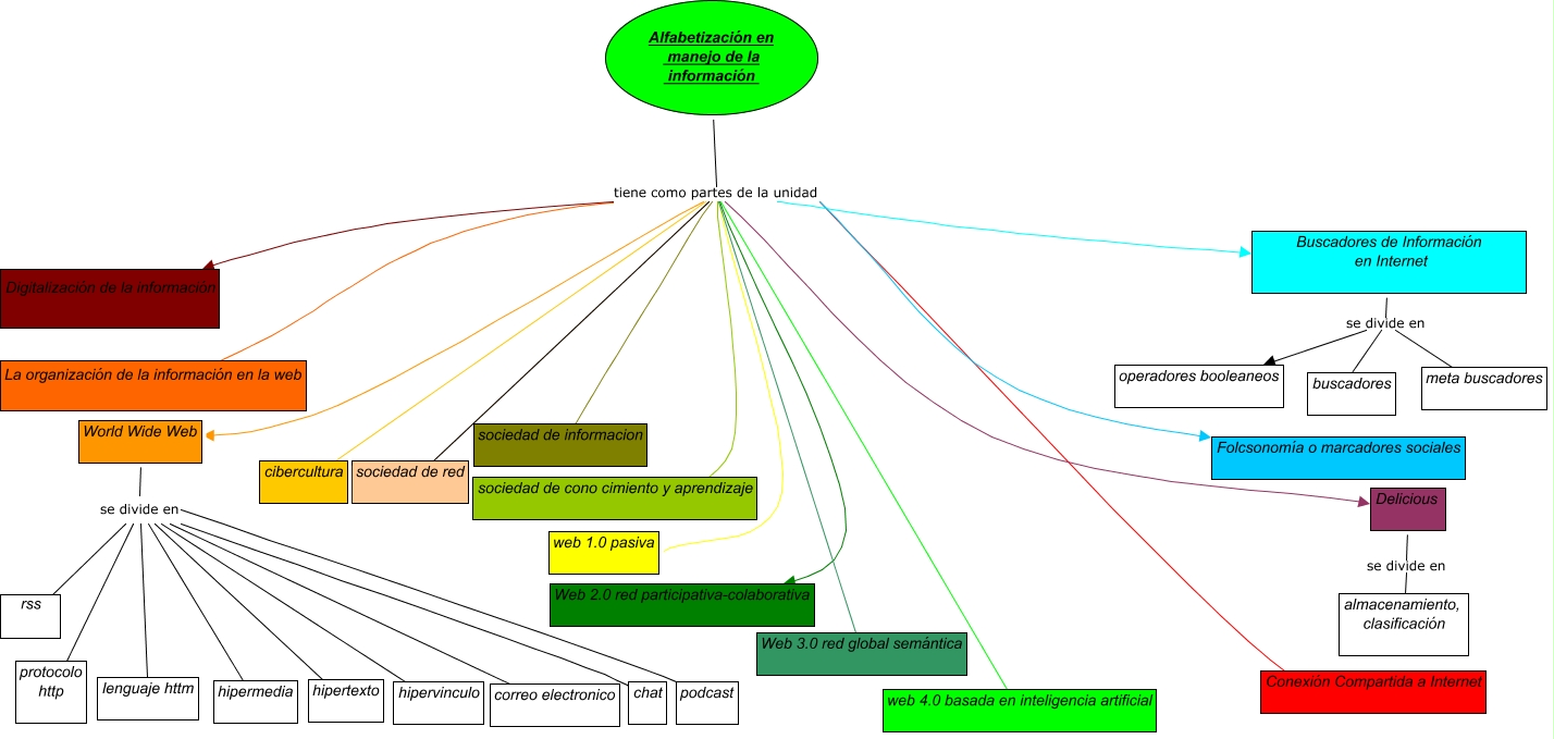 Este Cmap, tiene información relacionada con: cmap Dato Santiago,Di Paolo Santiago,Juan Ferrari,Fernando De Carli, Alfabetización en manejo de la información tiene como partes de la unidad Conexión Compartida a Internet, World Wide Web se divide en rss, Delicious se divide en almacenamiento, clasificación, Buscadores de Información en Internet se divide en meta buscadores, Alfabetización en manejo de la información tiene como partes de la unidad Buscadores de Información en Internet, Buscadores de Información en Internet se divide en buscadores, Alfabetización en manejo de la información tiene como partes de la unidad Web 3.0 red global semántica, Alfabetización en manejo de la información tiene como partes de la unidad web 4.0 basada en inteligencia artificial, World Wide Web se divide en hipervinculo, World Wide Web se divide en podcast, World Wide Web se divide en hipertexto, Alfabetización en manejo de la información tiene como partes de la unidad Folcsonomía o marcadores sociales, Alfabetización en manejo de la información tiene como partes de la unidad Delicious, World Wide Web se divide en hipermedia, Alfabetización en manejo de la información tiene como partes de la unidad Web 2.0 red participativa-colaborativa, Alfabetización en manejo de la información tiene como partes de la unidad World Wide Web, World Wide Web se divide en protocolo http, Alfabetización en manejo de la información tiene como partes de la unidad La organización de la información en la web, Alfabetización en manejo de la información tiene como partes de la unidad cibercultura, World Wide Web se divide en chat