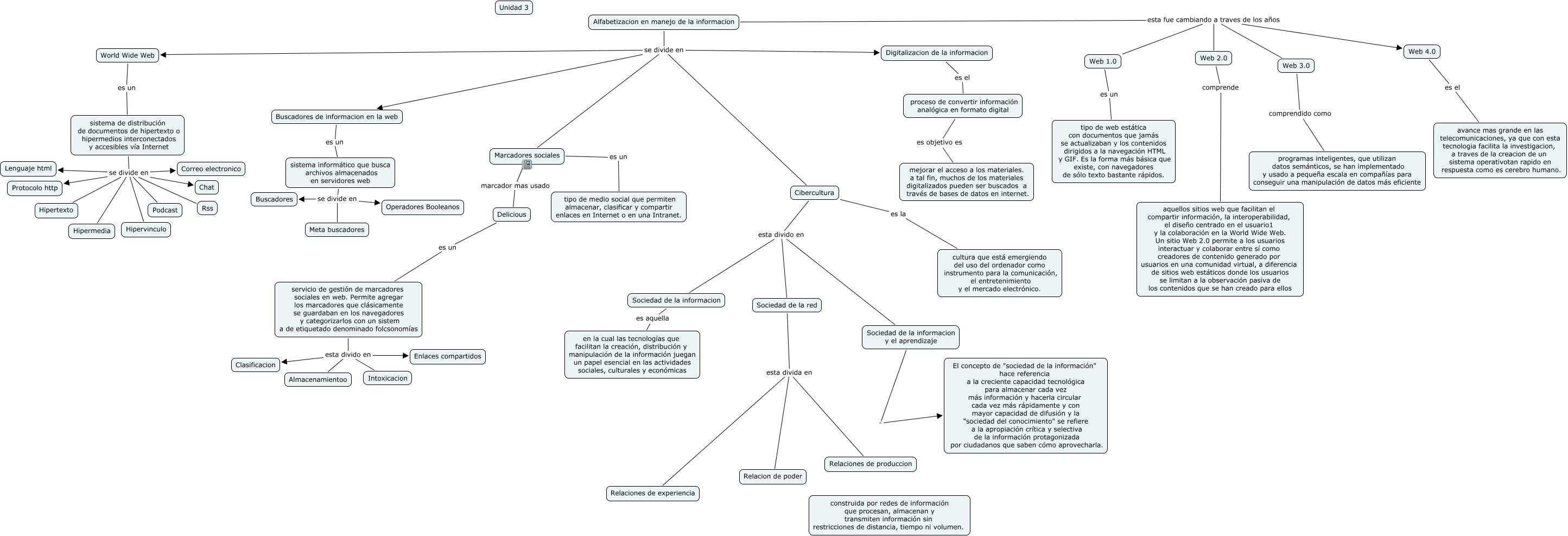 Este Cmap, tiene información relacionada con: Nicolas Del Blanco, Cibercultura esta divido en Sociedad de la informacion y el aprendizaje, sistema de distribución de documentos de hipertexto o hipermedios interconectados y accesibles vía Internet se divide en Podcast, proceso de convertir información analógica en formato digital es objetivo es mejorar el acceso a los materiales. a tal fin, muchos de los materiales digitalizados pueden ser buscados a través de bases de datos en internet., sistema de distribución de documentos de hipertexto o hipermedios interconectados y accesibles vía Internet se divide en Hipervinculo, Alfabetizacion en manejo de la informacion esta fue cambiando a traves de los años Web 1.0, servicio de gestión de marcadores sociales en web. Permite agregar los marcadores que clásicamente se guardaban en los navegadores y categorizarlos con un sistem a de etiquetado denominado folcsonomías esta divido en Almacenamientoo, Delicious es un servicio de gestión de marcadores sociales en web. Permite agregar los marcadores que clásicamente se guardaban en los navegadores y categorizarlos con un sistem a de etiquetado denominado folcsonomías, Alfabetizacion en manejo de la informacion esta fue cambiando a traves de los años Web 3.0, Web 4.0 es el avance mas grande en las telecomunicaciones, ya que con esta tecnologia facilita la investigacion, a traves de la creacion de un sistema operativotan rapido en respuesta como es cerebro humano., Cibercultura esta divido en Sociedad de la informacion, sistema de distribución de documentos de hipertexto o hipermedios interconectados y accesibles vía Internet se divide en Chat, Buscadores de informacion en la web es un sistema informático que busca archivos almacenados en servidores web, Digitalizacion de la informacion es el proceso de convertir información analógica en formato digital, Web 3.0 comprendido como programas inteligentes, que utilizan datos semánticos, se han implementado y usado a pequeña escala en compañías para conseguir una manipulación de datos más eficiente, sistema de distribución de documentos de hipertexto o hipermedios interconectados y accesibles vía Internet se divide en Protocolo http, Alfabetizacion en manejo de la informacion se divide en Marcadores sociales, Alfabetizacion en manejo de la informacion se divide en World Wide Web, Sociedad de la informacion es aquella en la cual las tecnologías que facilitan la creación, distribución y manipulación de la información juegan un papel esencial en las actividades sociales, culturales y económicas, sistema de distribución de documentos de hipertexto o hipermedios interconectados y accesibles vía Internet se divide en Lenguaje html, World Wide Web es un sistema de distribución de documentos de hipertexto o hipermedios interconectados y accesibles vía Internet