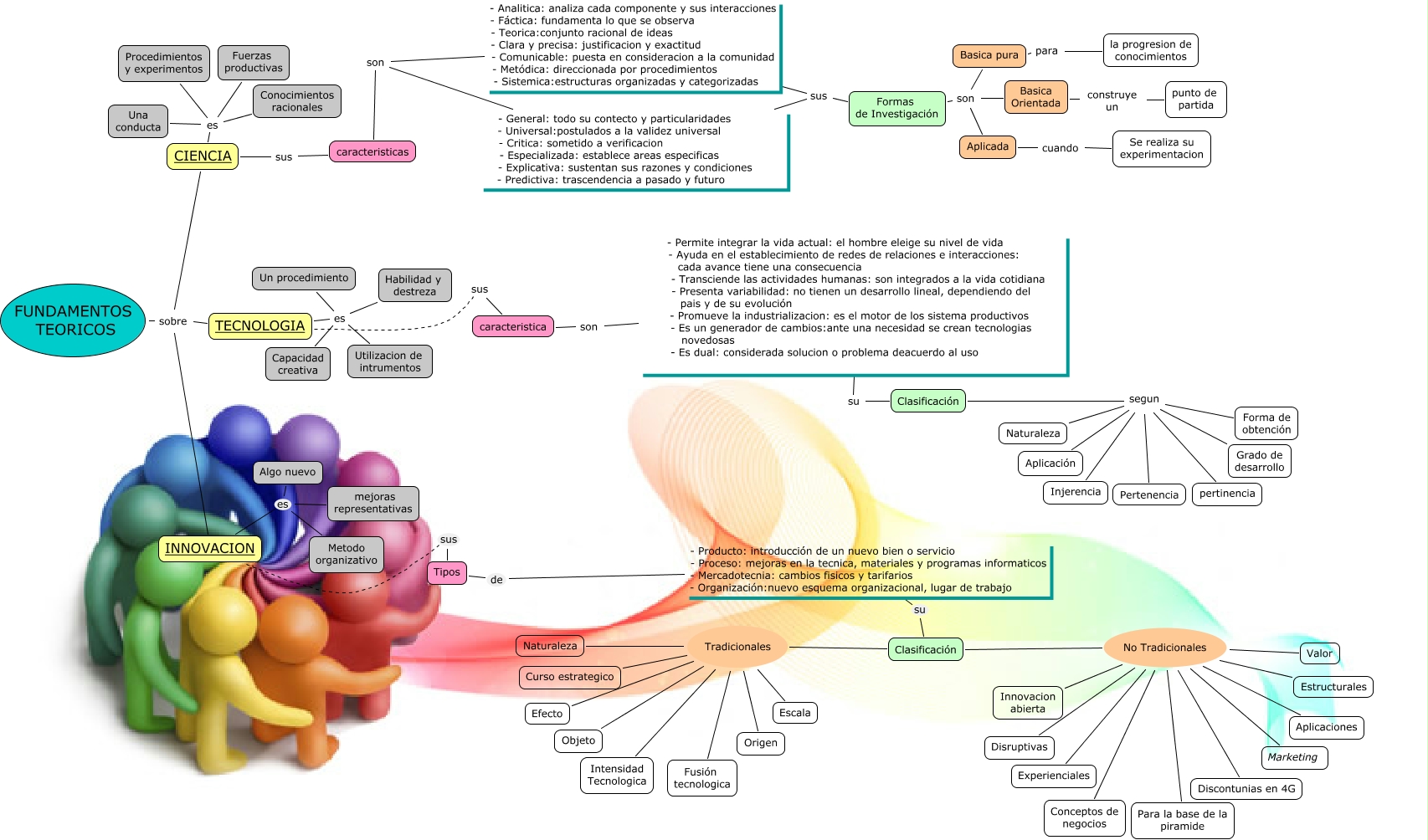 Este Cmap, tiene información relacionada con: FUNDAMENTOS TEORICOS, Tipos de - Producto: introducción de un nuevo bien o servicio - Proceso: mejoras en la tecnica, materiales y programas informaticos - Mercadotecnia: cambios fisicos y tarifarios - Organización:nuevo esquema organizacional, lugar de trabajo, Clasificación Tradicionales Intensidad Tecnologica, Basica Orientada construye un punto de partida, FUNDAMENTOS TEORICOS sobre CIENCIA, caracteristicas son - Analitica: analiza cada componente y sus interacciones - Fáctica: fundamenta lo que se observa - Teorica:conjunto racional de ideas - Clara y precisa: justificacion y exactitud - Comunicable: puesta en consideracion a la comunidad - Metódica: direccionada por procedimientos - Sistemica:estructuras organizadas y categorizadas, Clasificación No Tradicionales Para la base de la piramide, CIENCIA sus caracteristicas, Clasificación Tradicionales Fusión tecnologica, INNOVACION es Algo nuevo, Clasificación Tradicionales Objeto, CIENCIA es Conocimientos racionales, Clasificación No Tradicionales Aplicaciones, - Permite integrar la vida actual: el hombre eleige su nivel de vida - Ayuda en el establecimiento de redes de relaciones e interacciones: cada avance tiene una consecuencia - Transciende las actividades humanas: son integrados a la vida cotidiana - Presenta variabilidad: no tienen un desarrollo lineal, dependiendo del pais y de su evolución - Promueve la industrializacion: es el motor de los sistema productivos - Es un generador de cambios:ante una necesidad se crean tecnologias novedosas - Es dual: considerada solucion o problema deacuerdo al uso su Clasificación, Clasificación Tradicionales Escala, Clasificación No Tradicionales Valor, Clasificación segun Injerencia, Clasificación No Tradicionales Experienciales, CIENCIA es Una conducta, Clasificación No Tradicionales Disruptivas, Clasificación segun pertinencia