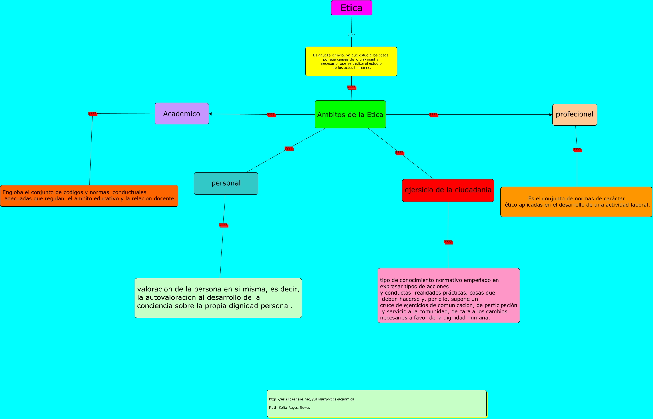 Este Cmap, tiene información relacionada con: el sentido de aprender etica, Es aquella ciencia, ya que estudia las cosas por sus causas de lo universal y necesario, que se dedica al estudio de los actos humanos. ???? Ambitos de la Etica, profecional ???? Es el conjunto de normas de carácter ético aplicadas en el desarrollo de una actividad laboral., personal ???? valoracion de la persona en si misma, es decir, la autovaloracion al desarrollo de la conciencia sobre la propia dignidad personal., Ambitos de la Etica ???? personal, Ambitos de la Etica ???? ejersicio de la ciudadania, Academico ???? Engloba el conjunto de codigos y normas conductuales adecuadas que regulan el ambito educativo y la relacion docente., Etica ???? Es aquella ciencia, ya que estudia las cosas por sus causas de lo universal y necesario, que se dedica al estudio de los actos humanos., Ambitos de la Etica ???? Academico, ejersicio de la ciudadania ???? tipo de conocimiento normativo empeñado en expresar tipos de acciones y conductas, realidades prácticas, cosas que deben hacerse y, por ello, supone un cruce de ejercicios de comunicación, de participación y servicio a la comunidad, de cara a los cambios necesarios a favor de la dignidad humana., Ambitos de la Etica ???? profecional