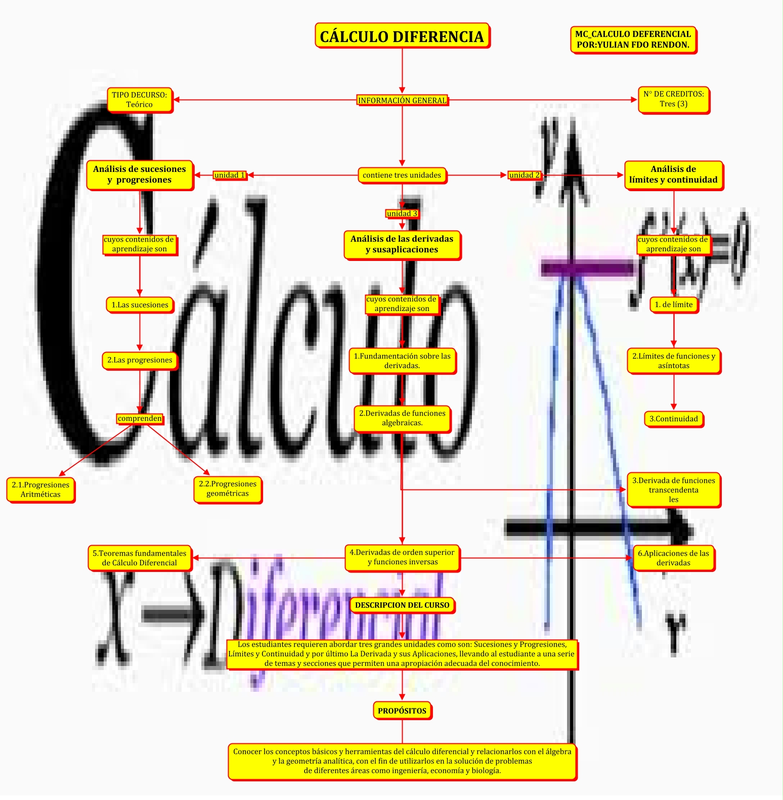 Este Cmap, tiene información relacionada con: MC_CALCUO_DIFERECIAL_YULIAN RENDON, Análisis de las derivadas y susaplicaciones cuyos contenidos de aprendizaje son 2.Derivadas de funciones algebraicas., 2.Las progresiones comprenden 2.2.Progresiones geométricas, 4.Derivadas de orden superior y funciones inversas ???? 5.Teoremas fundamentales de Cálculo Diferencial, Análisis de las derivadas y susaplicaciones cuyos contenidos de aprendizaje son 3.Derivada de funciones transcendenta les, CÁLCULO DIFERENCIA INFORMACIÓN GENERAL N° DE CREDITOS: Tres (3), Análisis de límites y continuidad cuyos contenidos de aprendizaje son 3.Continuidad, DESCRIPCION DEL CURSO Los estudiantes requieren abordar tres grandes unidades como son: Sucesiones y Progresiones, Límites y Continuidad y por último La Derivada y sus Aplicaciones, llevando al estudiante a una serie de temas y secciones que permiten una apropiación adecuada del conocimiento. PROPÓSITOS, Análisis de las derivadas y susaplicaciones cuyos contenidos de aprendizaje son DESCRIPCION DEL CURSO, contiene tres unidades unidad 1 Análisis de sucesiones y progresiones, 2.Las progresiones comprenden 2.1.Progresiones Aritméticas, CÁLCULO DIFERENCIA INFORMACIÓN GENERAL TIPO DECURSO: Teórico, Análisis de límites y continuidad cuyos contenidos de aprendizaje son 1. de límite, PROPÓSITOS E Conocer los conceptos básicos y herramientas del cálculo diferencial y relacionarlos con el álgebra y la geometría analítica, con el fin de utilizarlos en la solución de problemas de diferentes áreas como ingeniería, economía y biología., Análisis de sucesiones y progresiones cuyos contenidos de aprendizaje son 2.Las progresiones, Análisis de las derivadas y susaplicaciones cuyos contenidos de aprendizaje son 4.Derivadas de orden superior y funciones inversas, CÁLCULO DIFERENCIA INFORMACIÓN GENERAL contiene tres unidades, Análisis de límites y continuidad cuyos contenidos de aprendizaje son 2.Límites de funciones y asíntotas, contiene tres unidades unidad 2 Análisis de límites y continuidad, Análisis de las derivadas y susaplicaciones cuyos contenidos de aprendizaje son 1.Fundamentación sobre las derivadas., 4.Derivadas de orden superior y funciones inversas ???? 6.Aplicaciones de las derivadas