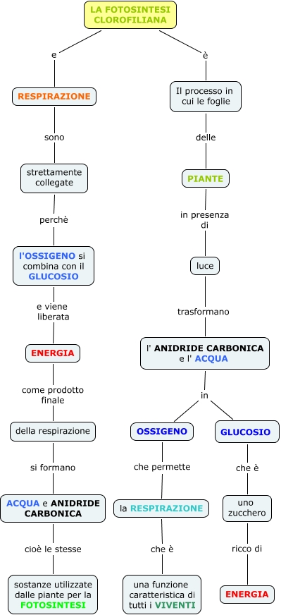 Questa Cmap, creata con IHMC CmapTools, contiene informazioni relative a: LA FOTOSINTESI CLOROFILIANA ALESSIA ROVOLETTO 2°C, la RESPIRAZIONE che è una funzione caratteristica di tutti i VIVENTI, l'OSSIGENO si combina con il GLUCOSIO e viene liberata ENERGIA, LA FOTOSINTESI CLOROFILIANA è Il processo in cui le foglie, l' ANIDRIDE CARBONICA e l' ACQUA in OSSIGENO, PIANTE in presenza di luce, GLUCOSIO che è uno zucchero, uno zucchero ricco di ENERGIA, LA FOTOSINTESI CLOROFILIANA e RESPIRAZIONE, ACQUA e ANIDRIDE CARBONICA cioè le stesse sostanze utilizzate dalle piante per la FOTOSINTESI, strettamente collegate perchè l'OSSIGENO si combina con il GLUCOSIO, Il processo in cui le foglie delle PIANTE, luce trasformano l' ANIDRIDE CARBONICA e l' ACQUA, RESPIRAZIONE sono strettamente collegate, ENERGIA come prodotto finale della respirazione, della respirazione si formano ACQUA e ANIDRIDE CARBONICA, l' ANIDRIDE CARBONICA e l' ACQUA in GLUCOSIO, OSSIGENO che permette la RESPIRAZIONE