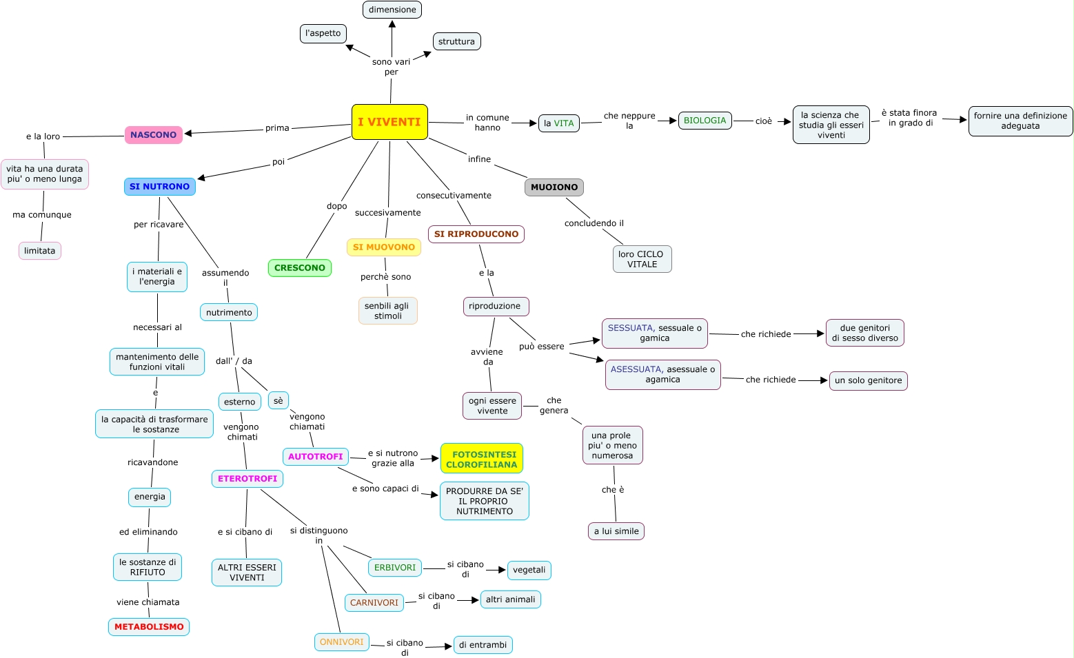 Questa Cmap, creata con IHMC CmapTools, contiene informazioni relative a: I VIVENTI ALESSIA ROVOLETTO 2°C, nutrimento dall' / da esterno, ETEROTROFI si distinguono in ERBIVORI, NASCONO e la loro vita ha una durata piu' o meno lunga, I VIVENTI poi SI NUTRONO, una prole piu' o meno numerosa che è a lui simile, la VITA che neppure la BIOLOGIA, ETEROTROFI e si cibano di ALTRI ESSERI VIVENTI, sè vengono chiamati AUTOTROFI, SI RIPRODUCONO e la riproduzione, ERBIVORI si cibano di vegetali, la scienza che studia gli esseri viventi è stata finora in grado di fornire una definizione adeguata, i materiali e l'energia necessari al mantenimento delle funzioni vitali, ASESSUATA, asessuale o agamica che richiede un solo genitore, ETEROTROFI si distinguono in CARNIVORI, energia ed eliminando le sostanze di RIFIUTO, I VIVENTI sono vari per dimensione, SI NUTRONO per ricavare i materiali e l'energia, I VIVENTI consecutivamente SI RIPRODUCONO, SI MUOVONO perchè sono senbili agli stimoli, I VIVENTI infine MUOIONO