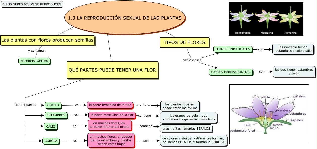 Este Cmap, tiene información relacionada con: LA REPRODUCCIÓN SEXUAL DE LAS PLANTAS, la parte masculina de la flor contiene los granos de polen, que contienen los gametos masculinos, 1.3 LA REPRODUCCIÓN SEXUAL DE LAS PLANTAS ???? TIPOS DE FLORES, 1.3 LA REPRODUCCIÓN SEXUAL DE LAS PLANTAS ???? QUÉ PARTES PUEDE TENER UNA FLOR, en muchas flores, es la parte inferior del pistilo contiene unas hojitas llamadas SÉPALOS, C�?LIZ es en muchas flores, es la parte inferior del pistilo, en muchas flores, alrededor de los estambres y pistilos tienen estas hojas son de colores vistosos y diferentes formas, se llamas PÉTALOS y forman la COROLA, la parte femenina de la flor contiene los ovarios, que es donde están los óvulos, QUÉ PARTES PUEDE TENER UNA FLOR Tiene 4 partes PISTILO, QUÉ PARTES PUEDE TENER UNA FLOR Tiene 4 partes COROLA, COROLA es en muchas flores, alrededor de los estambres y pistilos tienen estas hojas, Las plantas con flores producen semillas y se llaman ESPERMATOFITAS, FLORES HERMAFRODITAS son las que tienen estambres y pìstilo, ESTAMBRES es la parte masculina de la flor, FLORES UNISEXUALES son las que solo tienen estambres o solo pistilo, QUÉ PARTES PUEDE TENER UNA FLOR Tiene 4 partes ESTAMBRES, TIPOS DE FLORES hay 2 clases FLORES HERMAFRODITAS, TIPOS DE FLORES hay 2 clases FLORES UNISEXUALES, PISTILO es la parte femenina de la flor, QUÉ PARTES PUEDE TENER UNA FLOR Tiene 4 partes C�?LIZ, 1.3 LA REPRODUCCIÓN SEXUAL DE LAS PLANTAS ???? Las plantas con flores producen semillas
