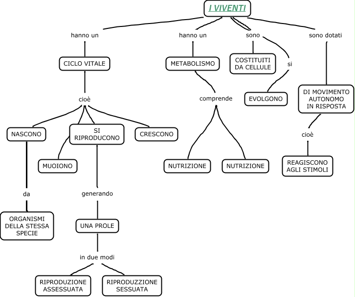 Questa Cmap, creata con IHMC CmapTools, contiene informazioni relative a: I VIVENTI, I VIVENTI hanno un METABOLISMO, SI RIPRODUCONO generando UNA PROLE, UNA PROLE in due modi RIPRODUZIONE ASSESSUATA, I VIVENTI sono COSTITUITI DA CELLULE, I VIVENTI hanno un CICLO VITALE, I VIVENTI si EVOLGONO, UNA PROLE in due modi RIPRODUZZIONE SESSUATA, NASCONO da ORGANISMI DELLA STESSA SPECIE, CICLO VITALE cioè NASCONO, CICLO VITALE cioè MUOIONO, METABOLISMO comprende NUTRIZIONE, METABOLISMO comprende NUTRIZIONE, CICLO VITALE cioè SI RIPRODUCONO, I VIVENTI sono dotati DI MOVIMENTO AUTONOMO IN RISPOSTA, DI MOVIMENTO AUTONOMO IN RISPOSTA cioè REAGISCONO AGLI STIMOLI, CICLO VITALE cioè CRESCONO
