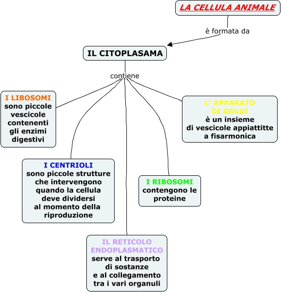 Questa Cmap, creata con IHMC CmapTools, contiene informazioni relative a: la cellula animale, IL CITOPLASAMA contiene I LIBOSOMI sono piccole vescicole contenenti gli enzimi digestivi, IL CITOPLASAMA contiene I CENTRIOLI sono piccole strutture che intervengono quando la cellula deve dividersi al momento della riproduzione, IL CITOPLASAMA contiene I RIBOSOMI contengono le proteine, IL CITOPLASAMA contiene IL RETICOLO ENDOPLASMATICO serve al trasporto di sostanze e al collegamento tra i vari organuli, IL CITOPLASAMA contiene L' APPARATO DI GOLGI è un insieme di vescicole appiattitte a fisarmonica, LA CELLULA ANIMALE è formata da IL CITOPLASAMA