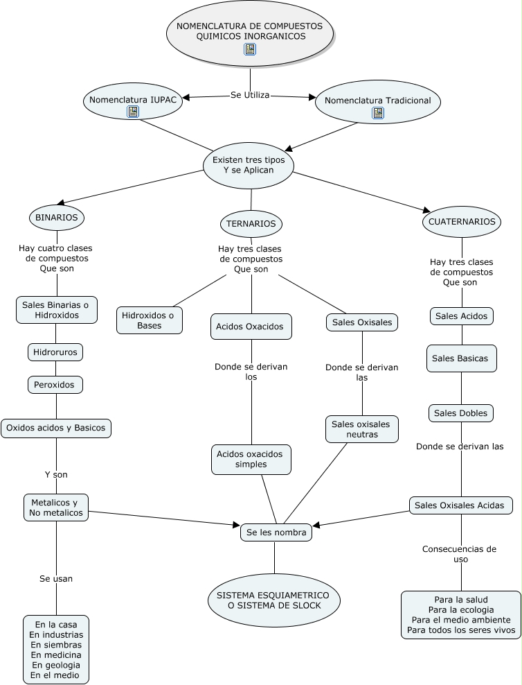 Este Cmap, tiene información relacionada con: Mapa Quimica, Sales Basicas Sales Dobles, TERNARIOS Hay tres clases de compuestos Que son Hidroxidos o Bases, Sales oxisales neutras ???? Se les nombra, Sales Oxisales Acidas ???? Se les nombra, Existen tres tipos Y se Aplican BINARIOS, Sales Dobles Donde se derivan las Sales Oxisales Acidas, Nomenclatura IUPAC Existen tres tipos Y se Aplican, NOMENCLATURA DE COMPUESTOS QUIMICOS INORGANICOS Se Utiliza Nomenclatura Tradicional, NOMENCLATURA DE COMPUESTOS QUIMICOS INORGANICOS Se Utiliza Nomenclatura IUPAC, Sales Acidos ???? Sales Basicas, Metalicos y No metalicos ???? Se les nombra, Peroxidos ???? Oxidos acidos y Basicos, Nomenclatura Tradicional Existen tres tipos Y se Aplican, Existen tres tipos Y se Aplican ???? TERNARIOS, TERNARIOS Hay tres clases de compuestos Que son Sales Oxisales, Sales Binarias o Hidroxidos Hidroruros, Se les nombra ???? SISTEMA ESQUIAMETRICO O SISTEMA DE SLOCK, Sales Oxisales Acidas Consecuencias de uso Para la salud Para la ecologia Para el medio ambiente Para todos los seres vivos, Sales Oxisales Donde se derivan las Sales oxisales neutras, Existen tres tipos Y se Aplican ???? CUATERNARIOS