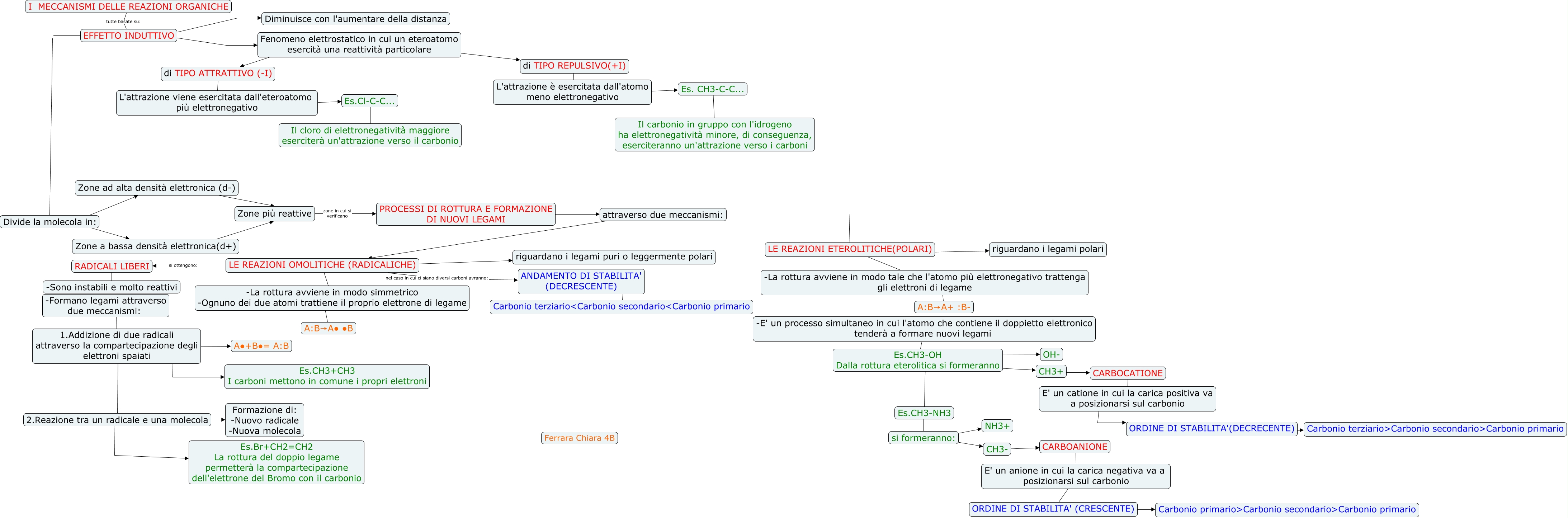Questa Cmap, creata con IHMC CmapTools, contiene informazioni relative a: Ferrara-Meccanismi di reazioni organiche, LE REAZIONI OMOLITICHE (RADICALICHE) ???? riguardano i legami puri o leggermente polari, di TIPO REPULSIVO(+I) ???? L'attrazione è esercitata dall'atomo meno elettronegativo, di TIPO ATTRATTIVO (-I) ???? L'attrazione viene esercitata dall'eteroatomo più elettronegativo, Es.CH3-OH Dalla rottura eterolitica si formeranno ???? CH3+, si formeranno: ???? CH3-, L'attrazione è esercitata dall'atomo meno elettronegativo ???? Es. CH3-C-C..., -Formano legami attraverso due meccanismi: ???? 1.Addizione di due radicali attraverso la compartecipazione degli elettroni spaiati, 2.Reazione tra un radicale e una molecola ???? Formazione di: -Nuovo radicale -Nuova molecola, CH3- ???? CARBOANIONE, Es.CH3-OH Dalla rottura eterolitica si formeranno ???? Es.CH3-NH3, Zone a bassa densità elettronica(d+) ???? Zone più reattive, ANDAMENTO DI STABILITA' (DECRESCENTE) ???? Carbonio terziario<Carbonio secondario<Carbonio primario, EFFETTO INDUTTIVO ???? Fenomeno elettrostatico in cui un eteroatomo esercità una reattività particolare, Fenomeno elettrostatico in cui un eteroatomo esercità una reattività particolare ???? di TIPO ATTRATTIVO (-I), Zone più reattive zone in cui si verificano PROCESSI DI ROTTURA E FORMAZIONE DI NUOVI LEGAMI, 2.Reazione tra un radicale e una molecola ???? Es.Br+CH2=CH2 La rottura del doppio legame permetterà la compartecipazione dell'elettrone del Bromo con il carbonio, Divide la molecola in: ???? Zone a bassa densità elettronica(d+), -La rottura avviene in modo tale che l'atomo più elettronegativo trattenga gli elettroni di legame ???? A:B→A+ :B-, Fenomeno elettrostatico in cui un eteroatomo esercità una reattività particolare ???? di TIPO REPULSIVO(+I), ORDINE DI STABILITA' (CRESCENTE) ???? E' un anione in cui la carica negativa va a posizionarsi sul carbonio