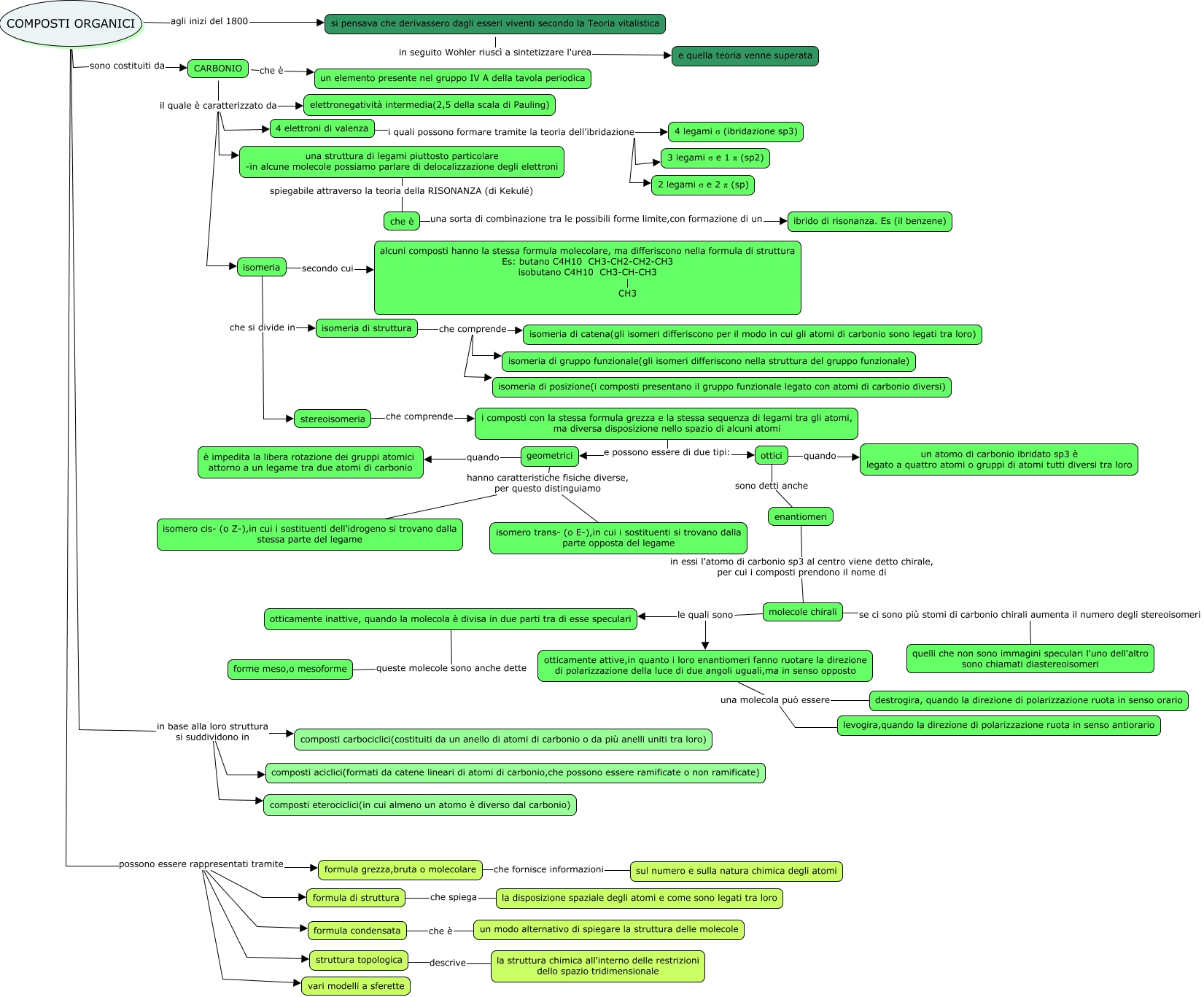 Questa Cmap, creata con IHMC CmapTools, contiene informazioni relative a: Giacomobono-organiche-v3, otticamente inattive, quando la molecola è divisa in due parti tra di esse speculari queste molecole sono anche dette forme meso,o mesoforme, COMPOSTI ORGANICI possono essere rappresentati tramite formula di struttura, CARBONIO il quale è caratterizzato da elettronegatività intermedia(2,5 della scala di Pauling), CARBONIO il quale è caratterizzato da 4 elettroni di valenza, COMPOSTI ORGANICI possono essere rappresentati tramite formula condensata, otticamente attive,in quanto i loro enantiomeri fanno ruotare la direzione di polarizzazione della luce di due angoli uguali,ma in senso opposto una molecola può essere destrogira, quando la direzione di polarizzazione ruota in senso orario, formula grezza,bruta o molecolare che fornisce informazioni sul numero e sulla natura chimica degli atomi, COMPOSTI ORGANICI agli inizi del 1800 si pensava che derivassero dagli esseri viventi secondo la Teoria vitalistica, isomeria di struttura che comprende isomeria di posizione(i composti presentano il gruppo funzionale legato con atomi di carbonio diversi), molecole chirali se ci sono più stomi di carbonio chirali aumenta il numero degli stereoisomeri quelli che non sono immagini speculari l'uno dell'altro sono chiamati diastereoisomeri, geometrici quando è impedita la libera rotazione dei gruppi atomici attorno a un legame tra due atomi di carbonio, stereoisomeria che comprende i composti con la stessa formula grezza e la stessa sequenza di legami tra gli atomi, ma diversa disposizione nello spazio di alcuni atomi, i composti con la stessa formula grezza e la stessa sequenza di legami tra gli atomi, ma diversa disposizione nello spazio di alcuni atomi e possono essere di due tipi: ottici, ottici sono detti anche enantiomeri, COMPOSTI ORGANICI possono essere rappresentati tramite formula grezza,bruta o molecolare, isomeria che si divide in stereoisomeria, COMPOSTI ORGANICI possono essere rappresentati tramite vari modelli a sferette, COMPOSTI ORGANICI in base alla loro struttura si suddividono in composti aciclici(formati da catene lineari di atomi di carbonio,che possono essere ramificate o non ramificate), COMPOSTI ORGANICI possono essere rappresentati tramite struttura topologica, otticamente attive,in quanto i loro enantiomeri fanno ruotare la direzione di polarizzazione della luce di due angoli uguali,ma in senso opposto una molecola può essere levogira,quando la direzione di polarizzazione ruota in senso antiorario