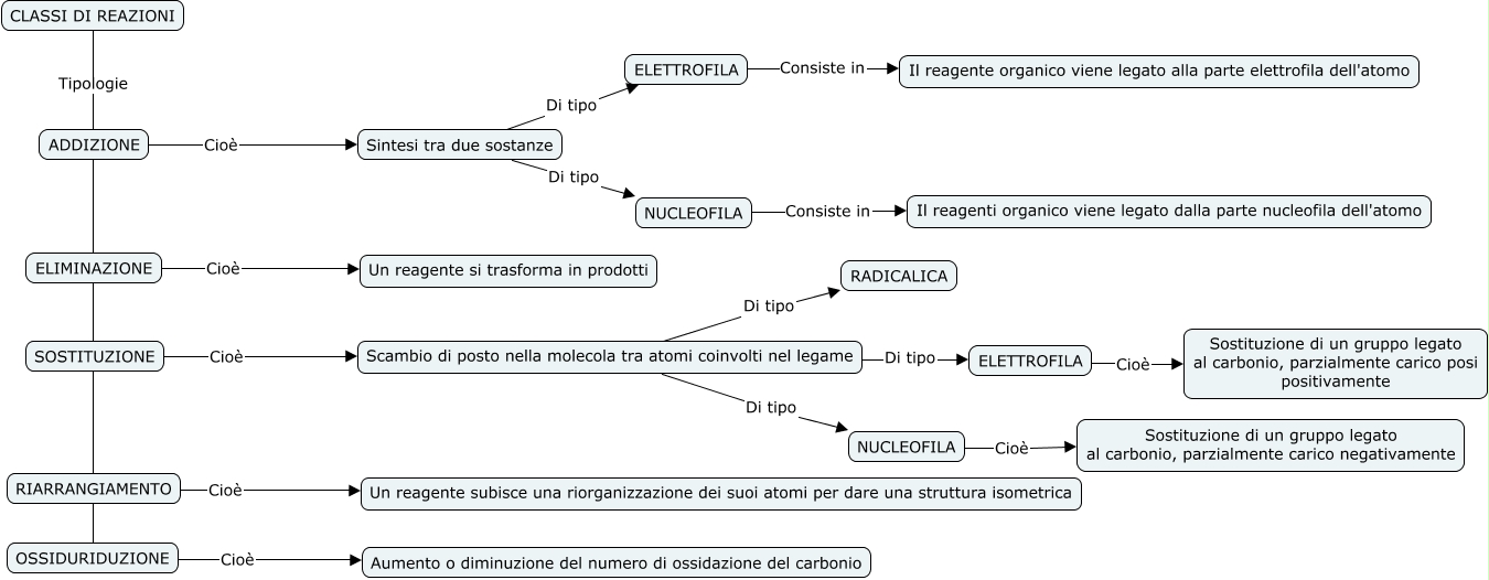 Questa Cmap, creata con IHMC CmapTools, contiene informazioni relative a: Moretti-Classi di reazioni, ELETTROFILA Cioè Sostituzione di un gruppo legato al carbonio, parzialmente carico posi positivamente, NUCLEOFILA Cioè Sostituzione di un gruppo legato al carbonio, parzialmente carico negativamente, SOSTITUZIONE Cioè Scambio di posto nella molecola tra atomi coinvolti nel legame, RIARRANGIAMENTO Cioè Un reagente subisce una riorganizzazione dei suoi atomi per dare una struttura isometrica, OSSIDURIDUZIONE Cioè Aumento o diminuzione del numero di ossidazione del carbonio, ELETTROFILA Consiste in Il reagente organico viene legato alla parte elettrofila dell'atomo, NUCLEOFILA Consiste in Il reagenti organico viene legato dalla parte nucleofila dell'atomo, Scambio di posto nella molecola tra atomi coinvolti nel legame Di tipo RADICALICA, CLASSI DI REAZIONI Tipologie OSSIDURIDUZIONE, Scambio di posto nella molecola tra atomi coinvolti nel legame Di tipo ELETTROFILA, ADDIZIONE Cioè Sintesi tra due sostanze, Sintesi tra due sostanze Di tipo ELETTROFILA, Sintesi tra due sostanze Di tipo NUCLEOFILA, Scambio di posto nella molecola tra atomi coinvolti nel legame Di tipo NUCLEOFILA, ELIMINAZIONE Cioè Un reagente si trasforma in prodotti