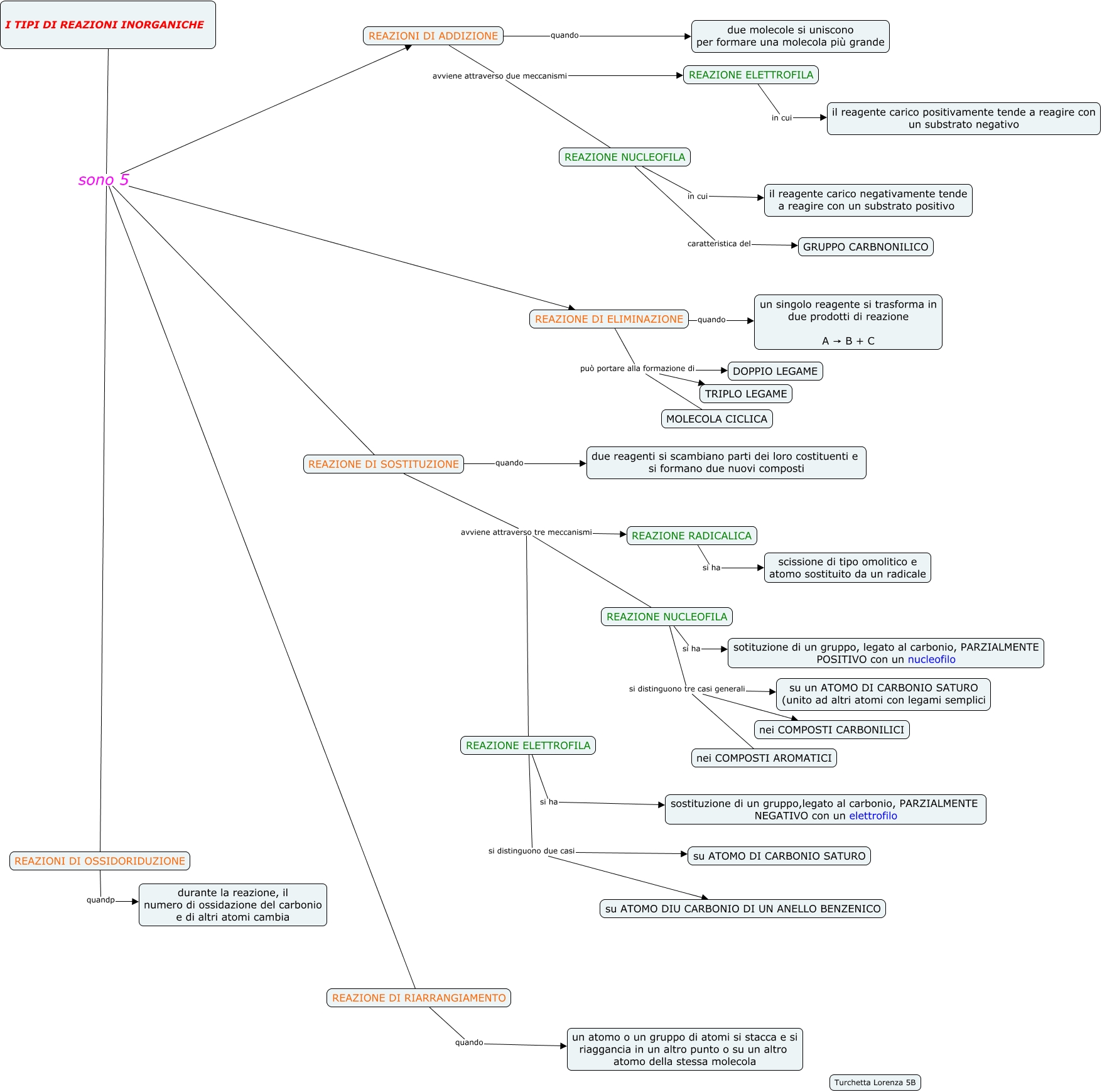 Questa Cmap, creata con IHMC CmapTools, contiene informazioni relative a: Turchetta-tipi di reazioni-v1, REAZIONI DI ADDIZIONE quando due molecole si uniscono per formare una molecola più grande, REAZIONE ELETTROFILA in cui il reagente carico positivamente tende a reagire con un substrato negativo, REAZIONE DI ELIMINAZIONE può portare alla formazione di TRIPLO LEGAME, REAZIONE DI SOSTITUZIONE quando due reagenti si scambiano parti dei loro costituenti e si formano due nuovi composti, REAZIONE NUCLEOFILA caratteristica del GRUPPO CARBNONILICO, REAZIONE DI SOSTITUZIONE avviene attraverso tre meccanismi REAZIONE RADICALICA, I TIPI DI REAZIONI INORGANICHE sono 5 REAZIONE DI SOSTITUZIONE, REAZIONE DI RIARRANGIAMENTO quando un atomo o un gruppo di atomi si stacca e si riaggancia in un altro punto o su un altro atomo della stessa molecola, I TIPI DI REAZIONI INORGANICHE sono 5 REAZIONI DI OSSIDORIDUZIONE, REAZIONE ELETTROFILA si ha sostituzione di un gruppo,legato al carbonio, PARZIALMENTE NEGATIVO con un elettrofilo, I TIPI DI REAZIONI INORGANICHE sono 5 REAZIONI DI ADDIZIONE, REAZIONE DI SOSTITUZIONE avviene attraverso tre meccanismi REAZIONE NUCLEOFILA, REAZIONE NUCLEOFILA si ha sotituzione di un gruppo, legato al carbonio, PARZIALMENTE POSITIVO con un nucleofilo, REAZIONE RADICALICA si ha scissione di tipo omolitico e atomo sostituito da un radicale, REAZIONE DI ELIMINAZIONE può portare alla formazione di DOPPIO LEGAME, REAZIONE NUCLEOFILA si distinguono tre casi generali nei COMPOSTI AROMATICI, REAZIONE NUCLEOFILA si distinguono tre casi generali su un ATOMO DI CARBONIO SATURO (unito ad altri atomi con legami semplici, REAZIONE NUCLEOFILA si distinguono tre casi generali nei COMPOSTI CARBONILICI, REAZIONE DI SOSTITUZIONE avviene attraverso tre meccanismi REAZIONE ELETTROFILA, I TIPI DI REAZIONI INORGANICHE sono 5 REAZIONE DI ELIMINAZIONE