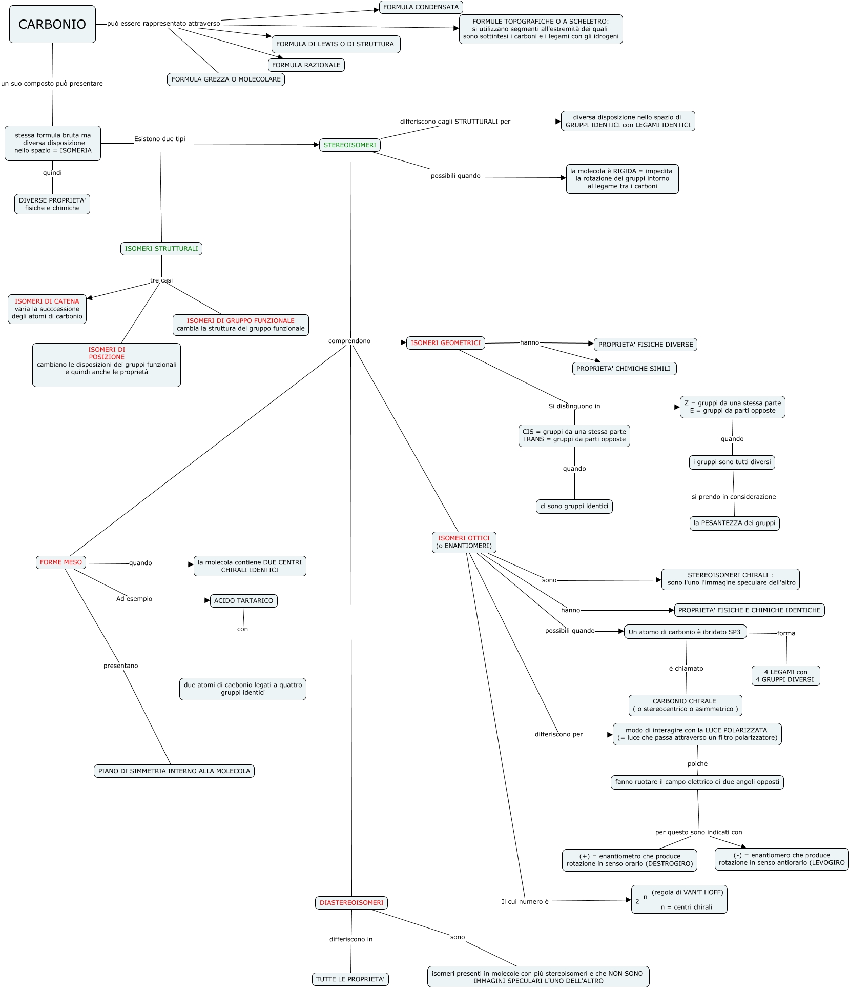 Questa Cmap, creata con IHMC CmapTools, contiene informazioni relative a: Turchetta-isomeria-v1, stessa formula bruta ma diversa disposizione nello spazio = ISOMERIA Esistono due tipi ISOMERI STRUTTURALI, FORME MESO quando la molecola contiene DUE CENTRI CHIRALI IDENTICI, CARBONIO può essere rappresentato attraverso FORMULA RAZIONALE, STEREOISOMERI differiscono dagli STRUTTURALI per diversa disposizione nello spazio di GRUPPI IDENTICI con LEGAMI IDENTICI, STEREOISOMERI comprendono ISOMERI OTTICI (o ENANTIOMERI), ISOMERI GEOMETRICI hanno PROPRIETA' FISICHE DIVERSE, i gruppi sono tutti diversi si prendo in considerazione la PESANTEZZA dei gruppi, ACIDO TARTARICO con due atomi di caebonio legati a quattro gruppi identici, ISOMERI STRUTTURALI tre casi ISOMERI DI CATENA varia la succcessione degli atomi di carbonio, fanno ruotare il campo elettrico di due angoli opposti per questo sono indicati con (-) = enantiomero che produce rotazione in senso antiorario (LEVOGIRO, CARBONIO un suo composto può presentare stessa formula bruta ma diversa disposizione nello spazio = ISOMERIA, CARBONIO può essere rappresentato attraverso FORMULA CONDENSATA, STEREOISOMERI comprendono DIASTEREOISOMERI, stessa formula bruta ma diversa disposizione nello spazio = ISOMERIA Esistono due tipi STEREOISOMERI, FORME MESO Ad esempio ACIDO TARTARICO, ISOMERI GEOMETRICI Si distinguono in Z = gruppi da una stessa parte E = gruppi da parti opposte, CARBONIO può essere rappresentato attraverso FORMULA DI LEWIS O DI STRUTTURA, fanno ruotare il campo elettrico di due angoli opposti per questo sono indicati con (+) = enantiometro che produce rotazione in senso orario (DESTROGIRO), ISOMERI OTTICI (o ENANTIOMERI) Il cui numero è <math xmlns="http://www.w3.org/1998/Math/MathML"> <mrow> <mtext> 2 </mtext> <mmultiscripts> <mtext> </mtext> <none/> <mmultiscripts> <mtext> n </mtext> <none/> <mtext> </mtext> </mmultiscripts> </mmultiscripts> <mtext> (regola di VAN'T HOFF)