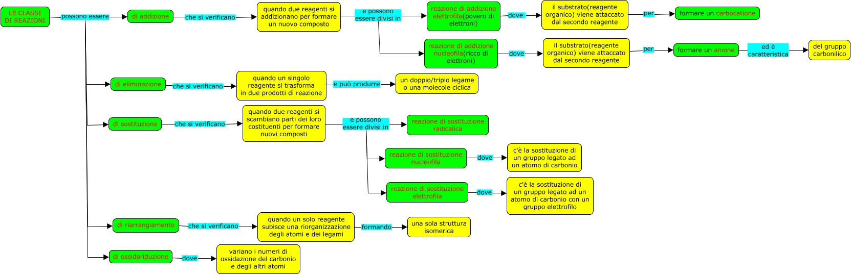 Questa Cmap, creata con IHMC CmapTools, contiene informazioni relative a: Moretti-Le classi di reazione, reazione di addizione elettrofila(povero di elettroni) dove il substrato(reagente organico) viene attaccato dal secondo reagente, LE CLASSI DI REAZIONI possono essere di ossidoriduzione, LE CLASSI DI REAZIONI possono essere di addizione, quando due reagenti si scambiano parti dei loro costituenti per formare nuovi composti e possono essere divisi in reazione di sostituzione radicalica, di eliminazione che si verificano quando un singolo reagente si trasforma in due prodotti di reazione, formare un anione ed è caratteristica del gruppo carbonilico, LE CLASSI DI REAZIONI possono essere di eliminazione, reazione di sostituzione elettrofila dove c'è la sostituzione di un gruppo legato ad un atomo di carbonio con un gruppo elettrofilo, il substrato(reagente organico) viene attaccato dal secondo reagente per formare un anione, quando due reagenti si addizionano per formare un nuovo composto e possono essere divisi in reazione di addizione nucleofila(ricco di elettroni), di ossidoriduzione dove variano i numeri di ossidazione del carbonio e degli altri atomi, quando due reagenti si scambiano parti dei loro costituenti per formare nuovi composti e possono essere divisi in reazione di sostituzione elettrofila, quando due reagenti si scambiano parti dei loro costituenti per formare nuovi composti e possono essere divisi in reazione di sostituzione nucleofila, di sostituzione che si verificano quando due reagenti si scambiano parti dei loro costituenti per formare nuovi composti, LE CLASSI DI REAZIONI possono essere di sostituzione, quando un solo reagente subisce una riorganizzazione degli atomi e dei legami formando una sola struttura isomerica, reazione di addizione nucleofila(ricco di elettroni) dove il substrato(reagente organico) viene attaccato dal secondo reagente, LE CLASSI DI REAZIONI possono essere di riarrangiamento, il substrato(reagente organico) viene attaccato dal secondo reagente per formare un carbocatione, di riarrangiamento che si verificano quando un solo reagente subisce una riorganizzazione degli atomi e dei legami