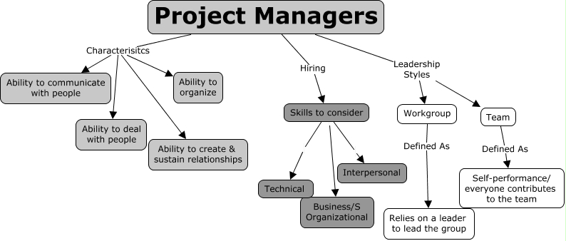 This Concept Map, created with IHMC CmapTools, has information related to: ProjectManagers, Team Defined As Self-performance/ everyone contributes to the team, Skills to consider Technical, Project Managers Characterisitcs Ability to communicate with people, Skills to consider Business/S Organizational, Project Managers Leadership Styles Workgroup, Skills to consider Interpersonal, Project Managers Hiring Skills to consider, Workgroup Defined As Relies on a leader to lead the group, Project Managers Characterisitcs Ability to create & sustain relationships, Project Managers Leadership Styles Team, Project Managers Characterisitcs Ability to organize, Project Managers Characterisitcs Ability to deal with people