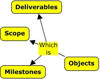 This Concept Map, created with IHMC CmapTools, has information related to: Ch 3 Part 4, Objects Which is Milestones, Objects Which is Scope, Objects Which is Deliverables