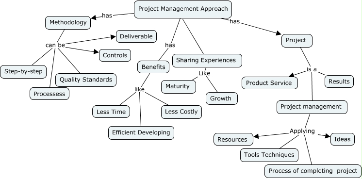 This Concept Map, created with IHMC CmapTools, has information related to: Midterm, Methodology can be Quality Standards, Project management Applying Process of completing project, Sharing Experiences Like Growth, Sharing Experiences Like Maturity, Project Management Approach ???? Sharing Experiences, Benefits like Efficient Developing, Benefits like Less Costly, Project is a Results, Project is a Project management, Methodology can be Step-by-step, Project Management Approach has Benefits, Methodology can be Processess, Project management Applying Resources, Methodology can be Controls, Project management Applying Ideas, Project is a Product Service, Methodology can be Deliverable, Project Management Approach has Project, Project Management Approach has Methodology, Benefits like Less Time