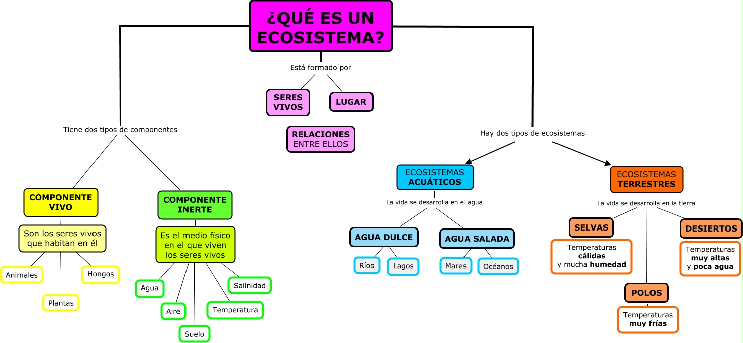 Este Cmap, tiene información relacionada con: LOS ECOSISTEMAS, AGUA DULCE Lagos, Es el medio físico en el que viven los seres vivos Aire, Es el medio físico en el que viven los seres vivos Agua, ECOSISTEMAS ACUÁTICOS La vida se desarrolla en el agua AGUA DULCE, COMPONENTE INERTE Es el medio físico en el que viven los seres vivos, Es el medio físico en el que viven los seres vivos Suelo, ¿QUÉ ES UN ECOSISTEMA? Hay dos tipos de ecosistemas ECOSISTEMAS TERRESTRES, AGUA DULCE Ríos, Es el medio físico en el que viven los seres vivos Salinidad, ¿QUÉ ES UN ECOSISTEMA? Tiene dos tipos de componentes COMPONENTE VIVO, POLOS Temperaturas muy frías, DESIERTOS Temperaturas muy altas y poca agua, Son los seres vivos que habitan en él Hongos, ECOSISTEMAS TERRESTRES La vida se desarrolla en la tierra DESIERTOS, SELVAS Temperaturas cálidas y mucha humedad, ¿QUÉ ES UN ECOSISTEMA? Está formado por RELACIONES ENTRE ELLOS, Son los seres vivos que habitan en él Animales, ECOSISTEMAS TERRESTRES La vida se desarrolla en la tierra POLOS, AGUA SALADA Mares, ¿QUÉ ES UN ECOSISTEMA? Hay dos tipos de ecosistemas ECOSISTEMAS ACUÁTICOS