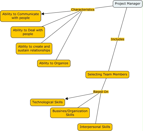 This Concept Map, created with IHMC CmapTools, has information related to: Chapter 4 Project Manager, Project Manager Characteristics Ability to Deal with people, Selecting Team Members Based On Bussines/Organization Skills, Selecting Team Members Based On Technological Skills, Project Manager Includes Selecting Team Members, Project Manager Characteristics Ability to create and sustain relationships, Selecting Team Members Based On Interpersonal Skills, Project Manager Characteristics Ability to Organize, Project Manager Characteristics Ability to Communicate with people