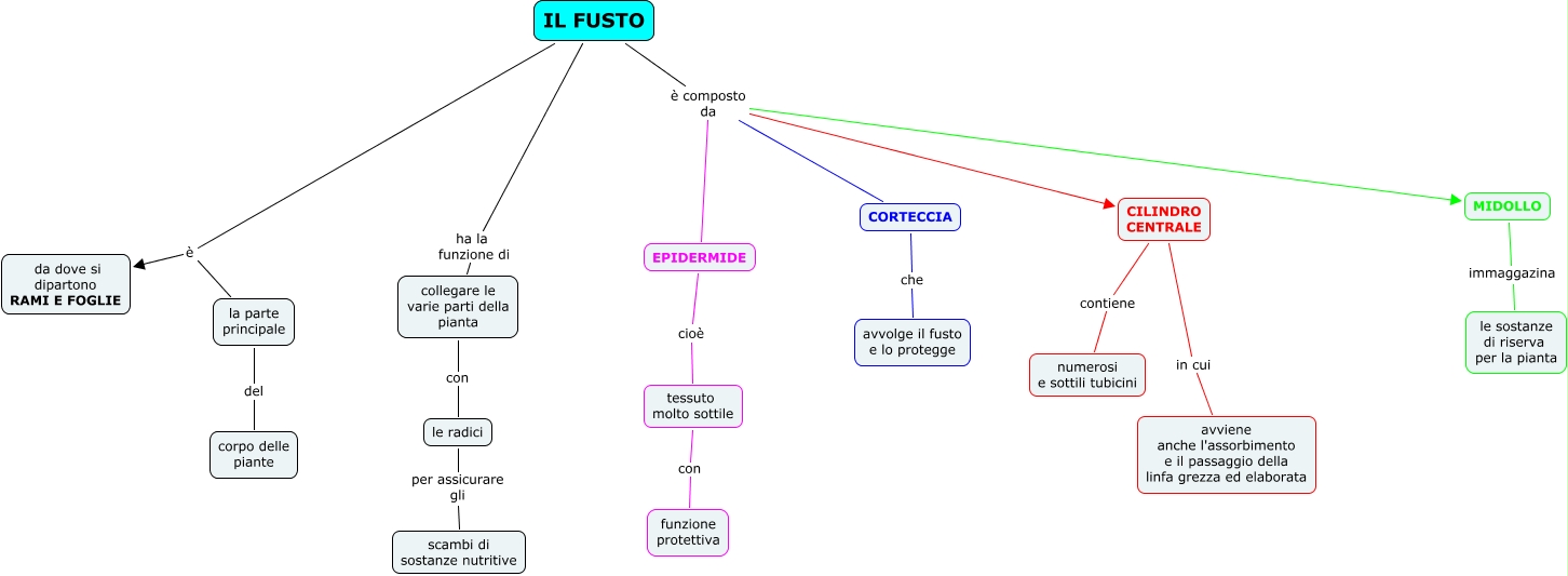 Questa Cmap, creata con IHMC CmapTools, contiene informazioni relative a: il fusto alessia rovoletto, MIDOLLO immaggazina le sostanze di riserva per la pianta, IL FUSTO è composto da MIDOLLO, collegare le varie parti della pianta con le radici, CILINDRO CENTRALE in cui avviene anche l'assorbimento e il passaggio della linfa grezza ed elaborata, IL FUSTO è la parte principale, IL FUSTO è composto da CORTECCIA, le radici per assicurare gli scambi di sostanze nutritive, IL FUSTO è da dove si dipartono RAMI E FOGLIE, la parte principale del corpo delle piante, IL FUSTO ha la funzione di collegare le varie parti della pianta, tessuto molto sottile con funzione protettiva, CORTECCIA che avvolge il fusto e lo protegge, IL FUSTO è composto da EPIDERMIDE, EPIDERMIDE cioè tessuto molto sottile, IL FUSTO è composto da CILINDRO CENTRALE, CILINDRO CENTRALE contiene numerosi e sottili tubicini