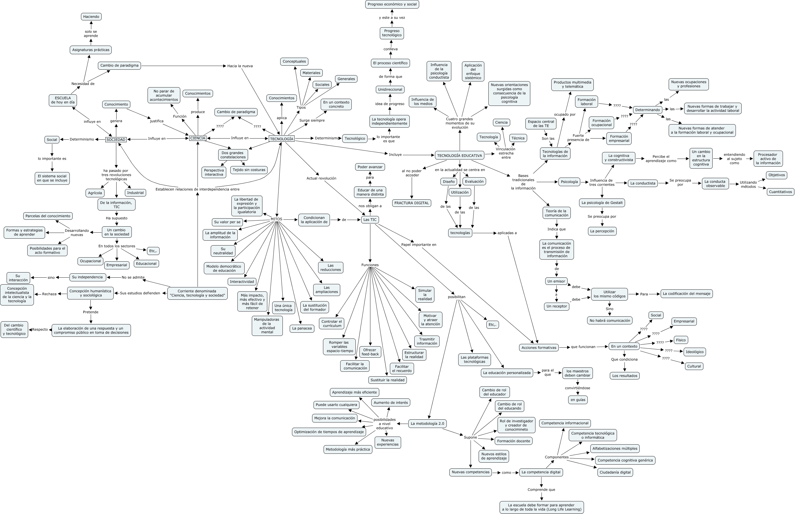 Este Cmap, tiene información relacionada con: Mapa3, SOCIEDAD ha pasado por tres revoluciones tecnológicas Agrícola, Progreso tecnológico y este a su vez Progreso económico y social, La metodología 2.0 Supone Nuevos estilos de aprendizaje, TECNOLOGÍA MITOS La panacea, TECNOLOGÍA EDUCATIVA al no poder acceder FRACTURA DIGITAL, En un contexto ???? Ideológico, La conductista Se preocupa por La conducta observable, TECNOLOGÍA EDUCATIVA Cuatro grandes momentos de su evolución Influencia de la psicología conductista, TECNOLOGÍA Tipos Sociales, TECNOLOGÍA MITOS Manipuladoras de la actividad mental, La competencia digital Componentes Alfabetizaciones múltiples, TECNOLOGÍA MITOS Interactividad, TECNOLOGÍA MITOS Más impacto, más efectivo y más fácil de retener, Las TIC Funciones Controlar el currículum, TECNOLOGÍA EDUCATIVA Cuatro grandes momentos de su evolución Aplicación del enfoque sistémico, En un contexto ???? Social, En un contexto ???? Empresarial, TECNOLOGÍA EDUCATIVA Bases tradicionales de la información Tecnologías de la información, TECNOLOGÍA ???? Dos grandes constelaciones, TECNOLOGÍA EDUCATIVA Vinculación estrecha entre Ciencia
