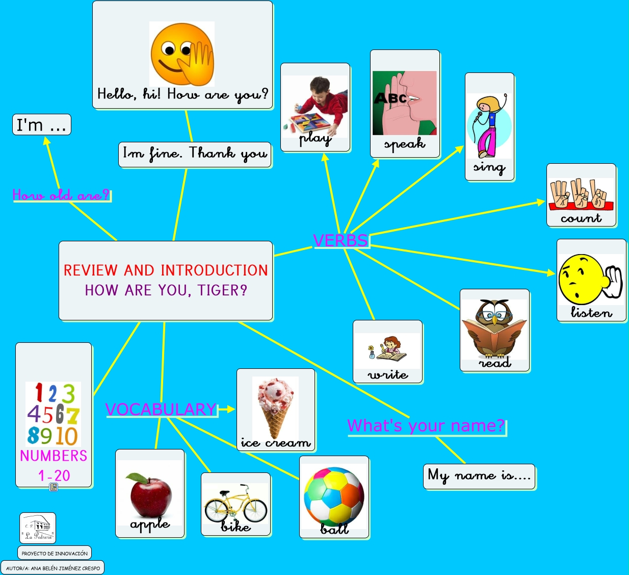 Este Cmap, tiene información relacionada con: Reviem and introduction, REVIEW AND INTRODUCTION HOW ARE YOU, TIGER? VERBS listen, REVIEW AND INTRODUCTION HOW ARE YOU, TIGER? VERBS sing, REVIEW AND INTRODUCTION HOW ARE YOU, TIGER? VOCABULARY ice cream, Hello, hi! How are you? ???? I'm fine. Thank you, REVIEW AND INTRODUCTION HOW ARE YOU, TIGER? ???? I'm fine. Thank you, REVIEW AND INTRODUCTION HOW ARE YOU, TIGER? VERBS speak, REVIEW AND INTRODUCTION HOW ARE YOU, TIGER? VOCABULARY apple, REVIEW AND INTRODUCTION HOW ARE YOU, TIGER? ???? ????, REVIEW AND INTRODUCTION HOW ARE YOU, TIGER? VOCABULARY bike, REVIEW AND INTRODUCTION HOW ARE YOU, TIGER? VERBS play, REVIEW AND INTRODUCTION HOW ARE YOU, TIGER? What's your name? My name is...., REVIEW AND INTRODUCTION HOW ARE YOU, TIGER? How old are? I'm ..., REVIEW AND INTRODUCTION HOW ARE YOU, TIGER? VOCABULARY ball, REVIEW AND INTRODUCTION HOW ARE YOU, TIGER? VERBS read, REVIEW AND INTRODUCTION HOW ARE YOU, TIGER? VERBS count, REVIEW AND INTRODUCTION HOW ARE YOU, TIGER? VERBS write