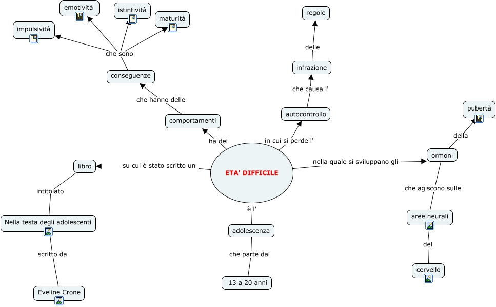 Questa Cmap, creata con IHMC CmapTools, contiene informazioni relative a: Adolescenza 1^F, ormoni della pubertà, ETA' DIFFICILE ha dei comportamenti, ETA' DIFFICILE su cui è stato scritto un libro, conseguenze che sono emotività, conseguenze che sono impulsività, autocontrollo che causa l' infrazione, conseguenze che sono maturità, ormoni che agiscono sulle aree neurali, comportamenti che hanno delle conseguenze, infrazione delle regole, conseguenze che sono istintività, aree neurali del cervello, adolescenza che parte dai 13 a 20 anni, ETA' DIFFICILE in cui si perde l' autocontrollo, ETA' DIFFICILE nella quale si sviluppano gli ormoni, ETA' DIFFICILE è l' adolescenza, libro intitolato Nella testa degli adolescenti, Nella testa degli adolescenti scritto da Eveline Crone