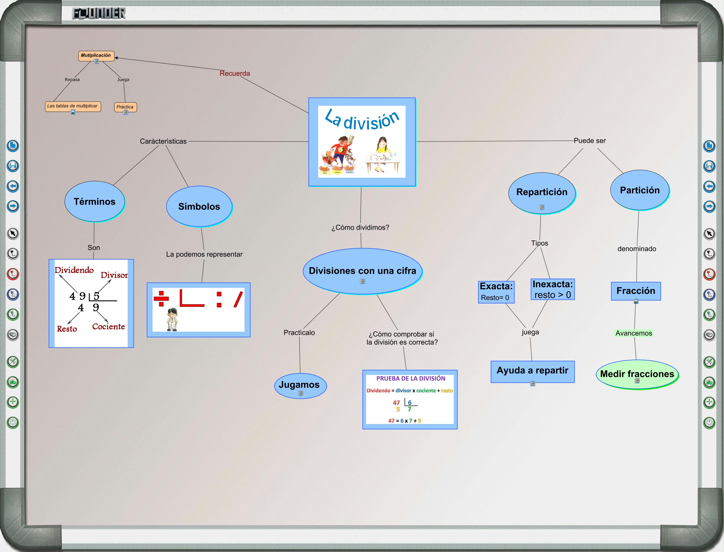 Este Cmap, tiene información relacionada con: La División, Divisiones con una cifra ¿Cómo comprobar si la división es correcta?, Términos Son, Carácterísticas Símbolos, Símbolos La podemos representar, Exacta: Resto= 0 juega Ayuda a repartir, Recuerda Mutiplicación, Repartición Tipos Exacta: Resto= 0, Repartición Tipos Inexacta: resto > 0, Partición denominado Fracción, Puede ser Partición, Inexacta: resto > 0 juega Ayuda a repartir, Carácterísticas Términos, Puede ser Repartición, ¿Cómo dividimos? Divisiones con una cifra, Mutiplicación Repasa Las tablas de multiplicar, Fracción Avancemos Medir fracciones, Mutiplicación Juega Práctica, Divisiones con una cifra Practícalo Jugamos
