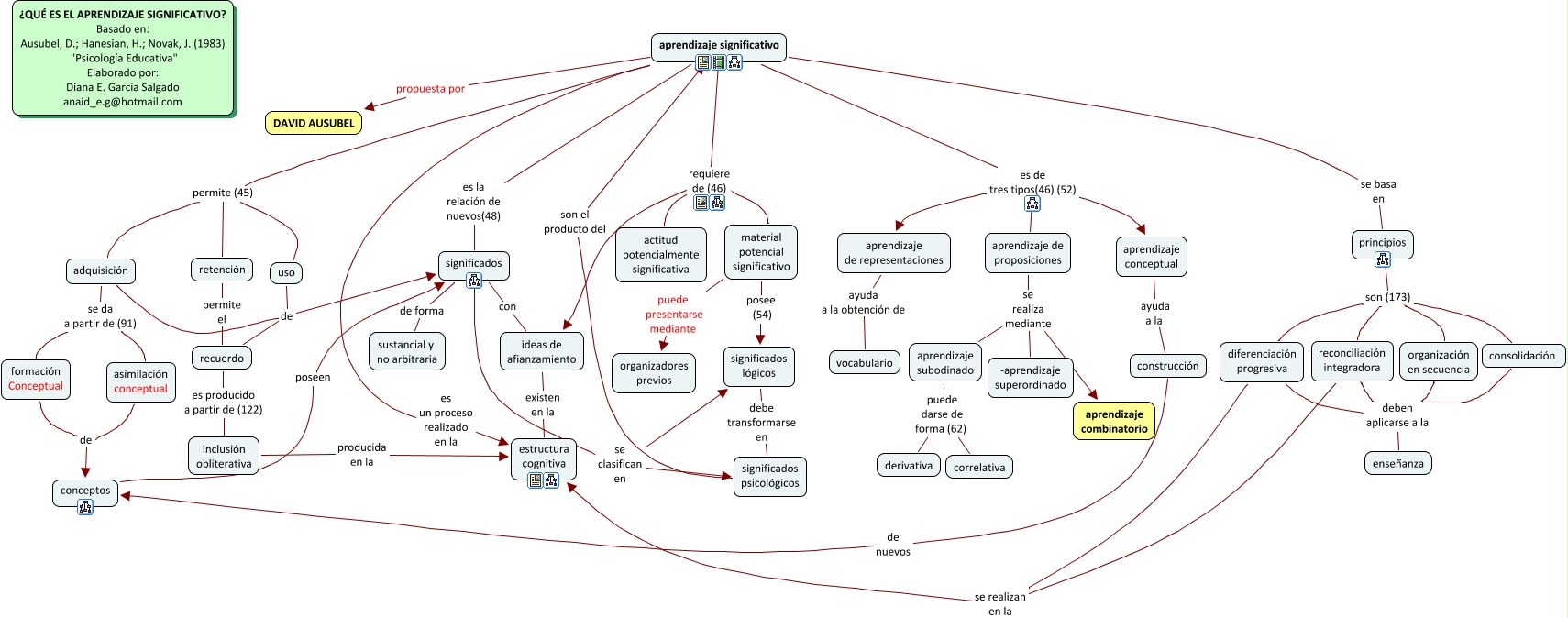 Este Cmap, tiene información relacionada con: APRENDIZAJE SIGNIFICATIVO