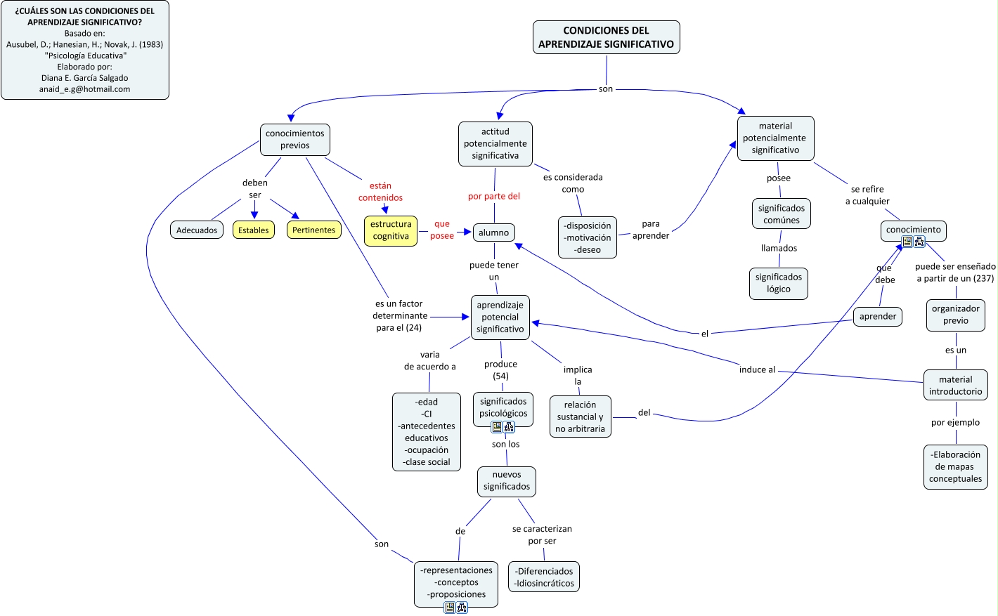 Este Cmap, tiene información relacionada con: CONDICIONES DEL APRENDIZAJE SIGNIFICATIVO