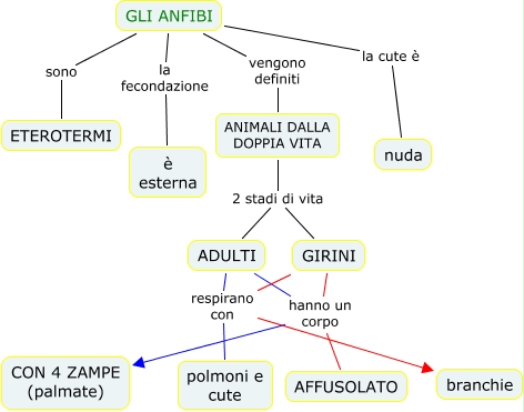 Questa Cmap, creata con IHMC CmapTools, contiene informazioni relative a: gli anfibi, GIRINI hanno un corpo CON 4 ZAMPE (palmate), GLI ANFIBI sono ETEROTERMI, ADULTI hanno un corpo CON 4 ZAMPE (palmate), ADULTI hanno un corpo AFFUSOLATO, ANIMALI DALLA DOPPIA VITA 2 stadi di vita ADULTI, ADULTI respirano con polmoni e cute, GLI ANFIBI la cute è nuda, GIRINI respirano con polmoni e cute, GIRINI respirano con branchie, GLI ANFIBI la fecondazione è esterna, ANIMALI DALLA DOPPIA VITA 2 stadi di vita GIRINI, GIRINI hanno un corpo AFFUSOLATO, GLI ANFIBI vengono definiti ANIMALI DALLA DOPPIA VITA, ADULTI respirano con branchie