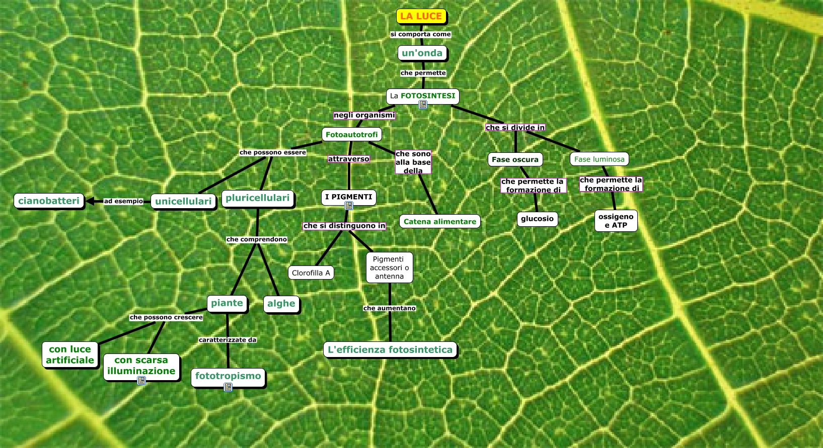 Questa Cmap, creata con IHMC CmapTools, contiene informazioni relative a: LUCE BOTANICA, piante caratterizzate da fototropismo, Fotoautotrofi attraverso I PIGMENTI, un'onda che permette La FOTOSINTESI, Fase oscura che permette la formazione di glucosio, La FOTOSINTESI negli organismi Fotoautotrofi, pluricellulari che comprendono piante, piante che possono crescere con luce artificiale, Fotoautotrofi che possono essere pluricellulari, Fotoautotrofi che possono essere unicellulari, Fase luminosa che permette la formazione di ossigeno e ATP, I PIGMENTI che si distinguono in Pigmenti accessori o antenna, Fotoautotrofi che sono alla base della Catena alimentare, La FOTOSINTESI che si divide in Fase luminosa, unicellulari ad esempio cianobatteri, pluricellulari che comprendono alghe, Pigmenti accessori o antenna che aumentano L'efficienza fotosintetica, LA LUCE si comporta come un'onda, piante che possono crescere con scarsa illuminazione, La FOTOSINTESI che si divide in Fase oscura, I PIGMENTI che si distinguono in Clorofilla A