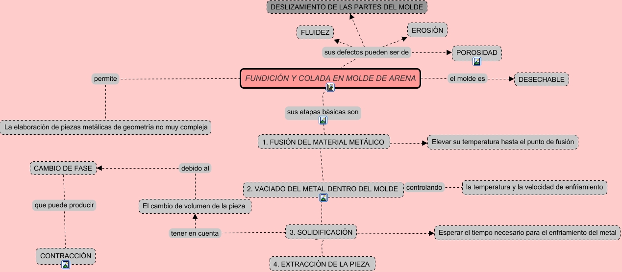 Este Cmap, tiene información relacionada con: Marta Martín Bravo, CAMBIO DE FASE que puede producir CONTRACCIÓN, El cambio de volumen de la pieza debido al CAMBIO DE FASE, FUNDICIÓN Y COLADA EN MOLDE DE ARENA sus etapas básicas son 1. FUSIÓN DEL MATERIAL METÁLICO, FUNDICIÓN Y COLADA EN MOLDE DE ARENA sus defectos pueden ser de DESLIZAMIENTO DE LAS PARTES DEL MOLDE, 1. FUSIÓN DEL MATERIAL METÁLICO ???? Elevar su temperatura hasta el punto de fusión, FUNDICIÓN Y COLADA EN MOLDE DE ARENA sus defectos pueden ser de FLUIDEZ, 3. SOLIDIFICACIÓN ???? 4. EXTRACCIÓN DE LA PIEZA, 3. SOLIDIFICACIÓN tener en cuenta El cambio de volumen de la pieza, FUNDICIÓN Y COLADA EN MOLDE DE ARENA sus defectos pueden ser de POROSIDAD, 2. VACIADO DEL METAL DENTRO DEL MOLDE controlando la temperatura y la velocidad de enfriamiento, 2. VACIADO DEL METAL DENTRO DEL MOLDE ???? 3. SOLIDIFICACIÓN, 1. FUSIÓN DEL MATERIAL METÁLICO ???? 2. VACIADO DEL METAL DENTRO DEL MOLDE, FUNDICIÓN Y COLADA EN MOLDE DE ARENA el molde es DESECHABLE, 3. SOLIDIFICACIÓN ???? Esperar el tiempo necesario para el enfriamiento del metal, FUNDICIÓN Y COLADA EN MOLDE DE ARENA permite La elaboración de piezas metálicas de geometría no muy compleja, FUNDICIÓN Y COLADA EN MOLDE DE ARENA sus defectos pueden ser de EROSIÓN